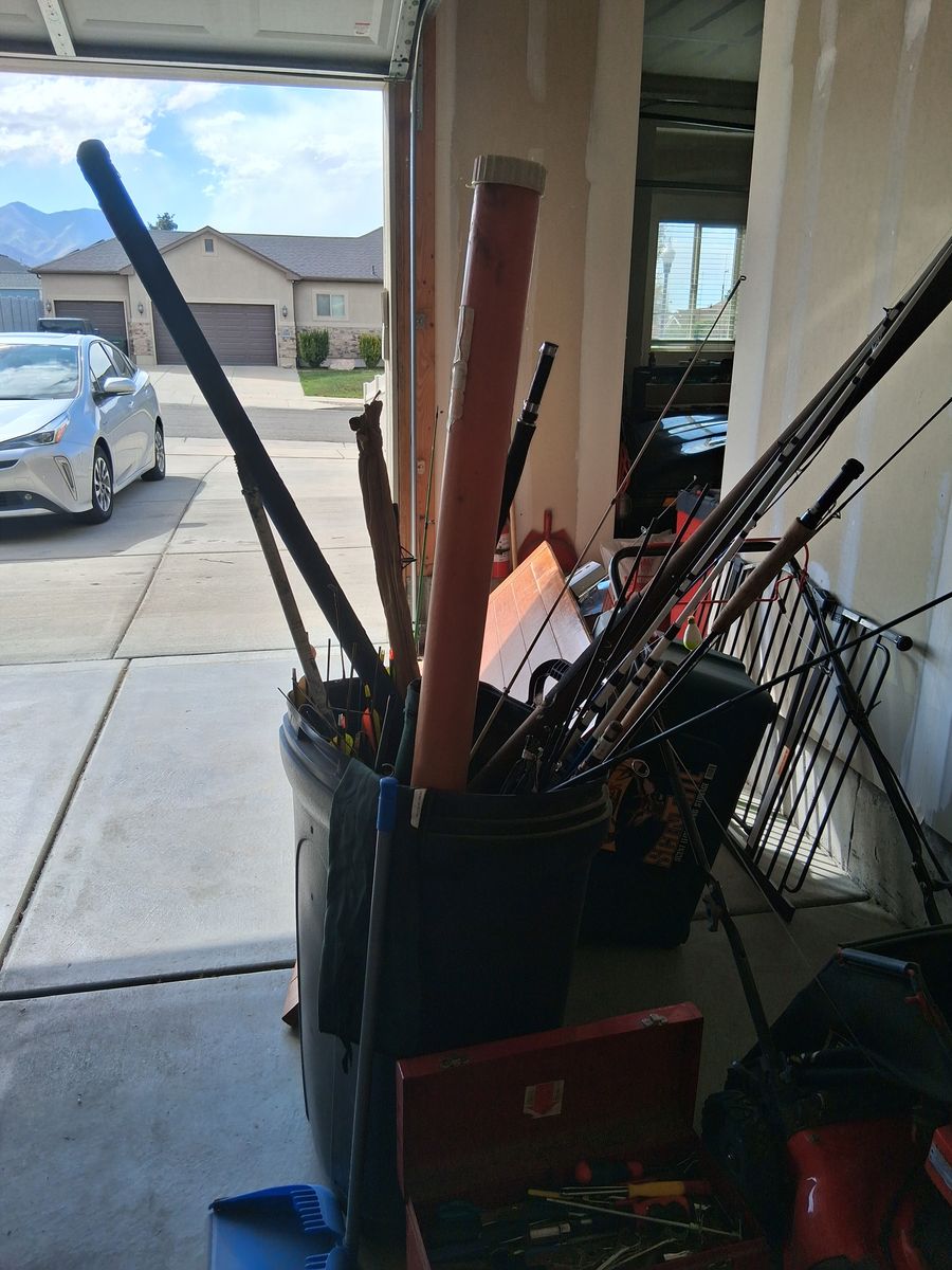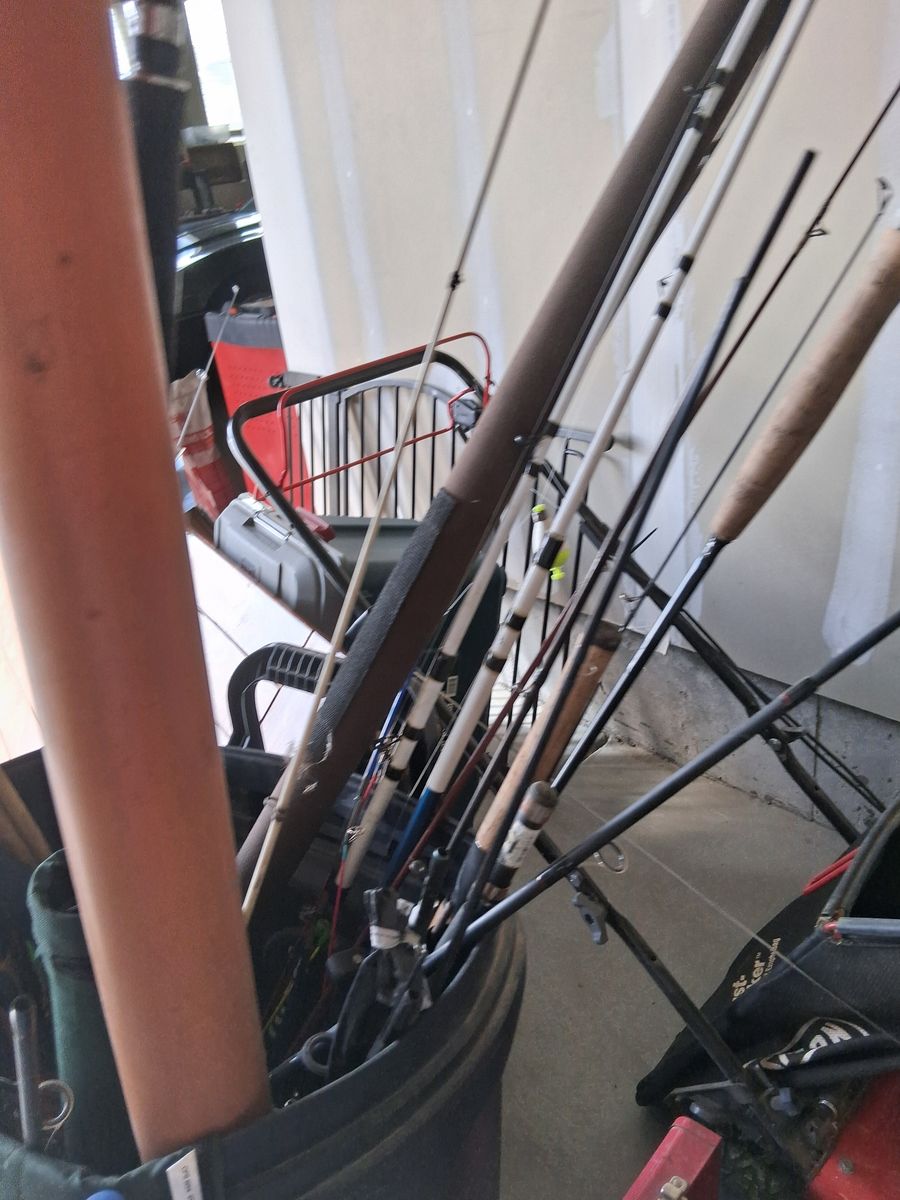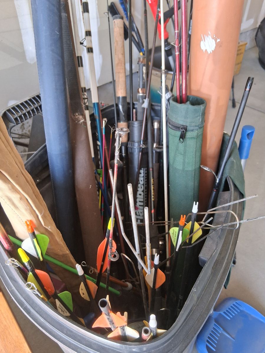 misc fishing poles and arrows