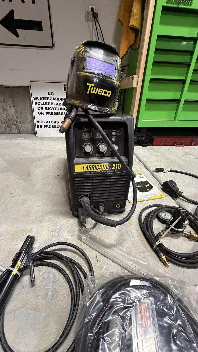 The FABRICATOR 211I WELDING PACK incorporates several features to enhance welding performance and user experience. Its multi-process capability allows for MIG, Stick, and Lift TIG welding from a single power source. The dual voltage input (110V/230V) provides operational flexibility for both workshop and on-site applications. Very little use, has wire in machine and comes with Tweco auto helmet. $1,700 when new $1000 obo Just don’t use it and to nice of a welder to just sit in my garage. Tweco is name brand and is compatible with a lot of Mikler welders.