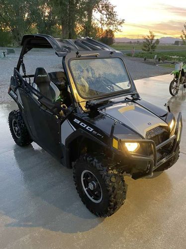 2012 Polaris RZR Ranger 800 High Output. EFI, electronic power steering, new tires, seats 2, electric winch. Many extras including windshield, doors, roof, front bumper, storage pouches, rearview mirror. 2300 original miles. Extra new body panels (to be installed) included. Downsizing - going on a senior mission. $8275 cash only, local delivery only, no shipping.