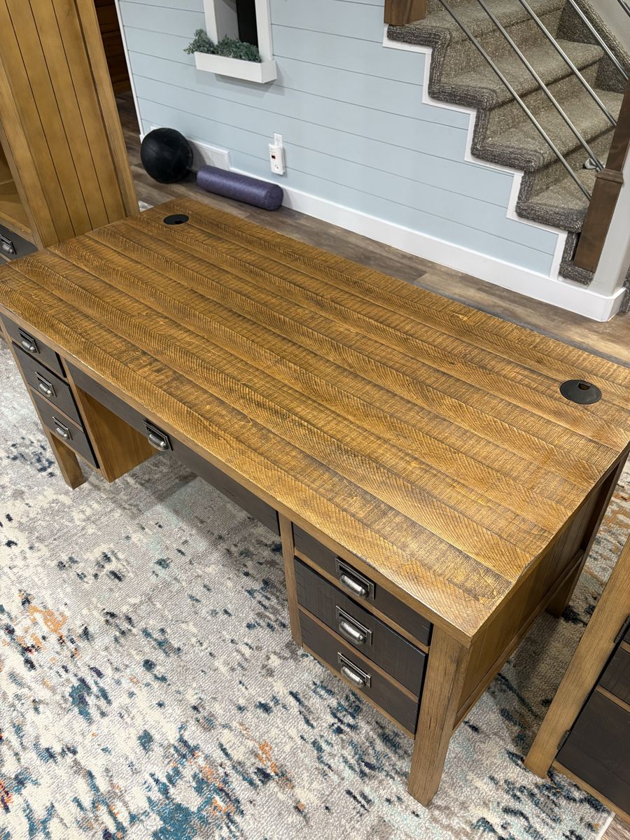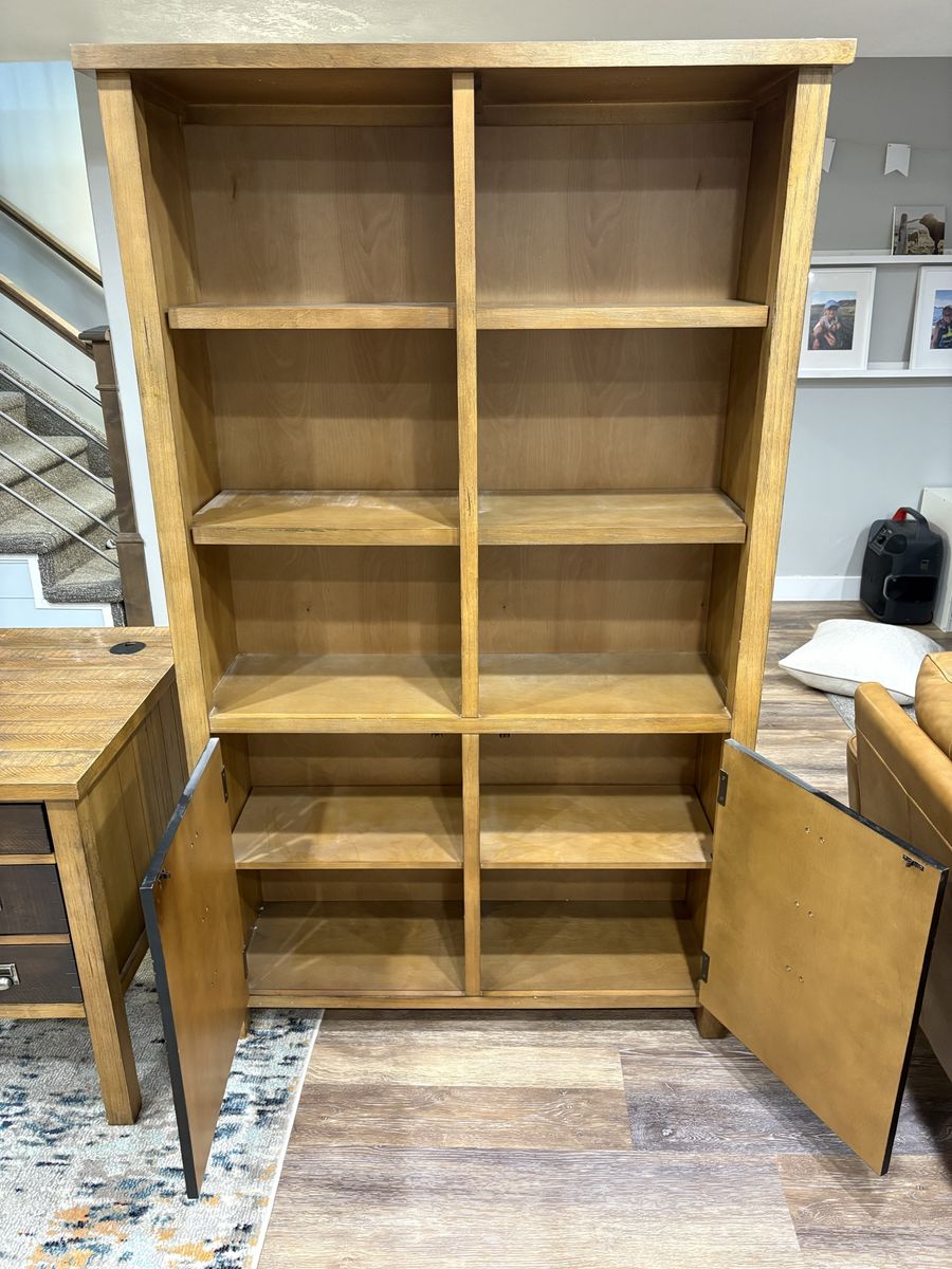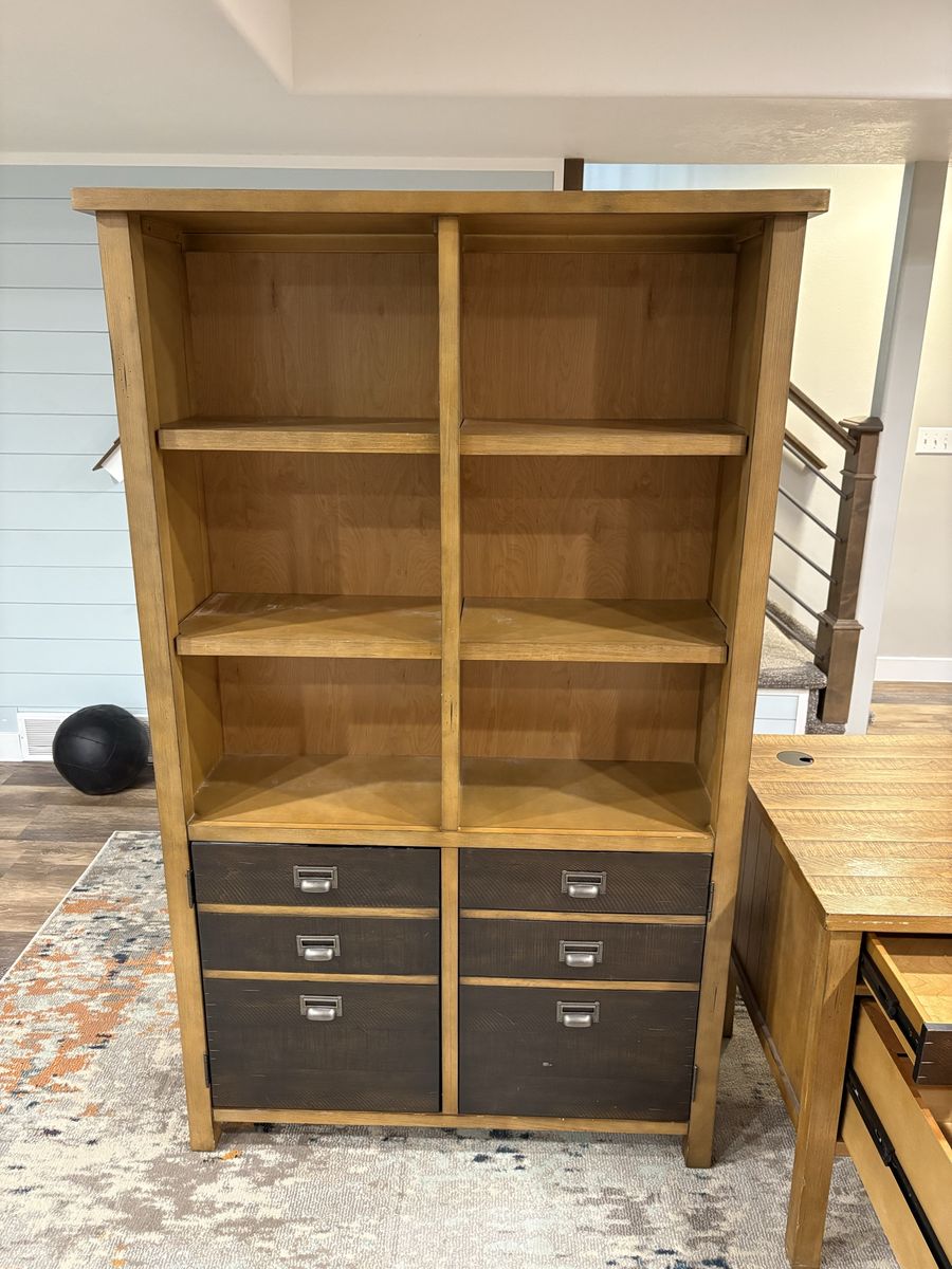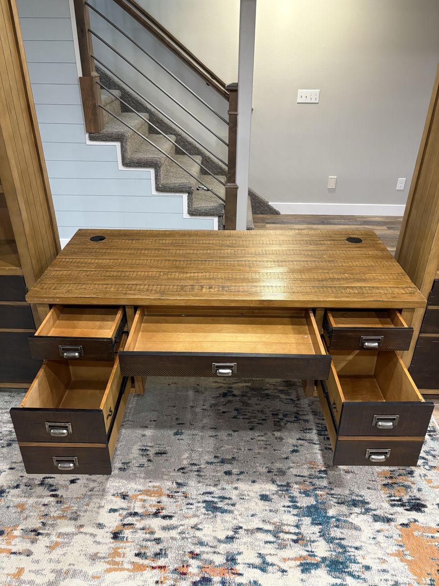 VenmoHigh quality desk and matching bookshelves. RC Willey set. Very well taken care of. Minimal wear and tear. You’ll be doing deals, reading fine books, and securing world peace from this desk in the near future.