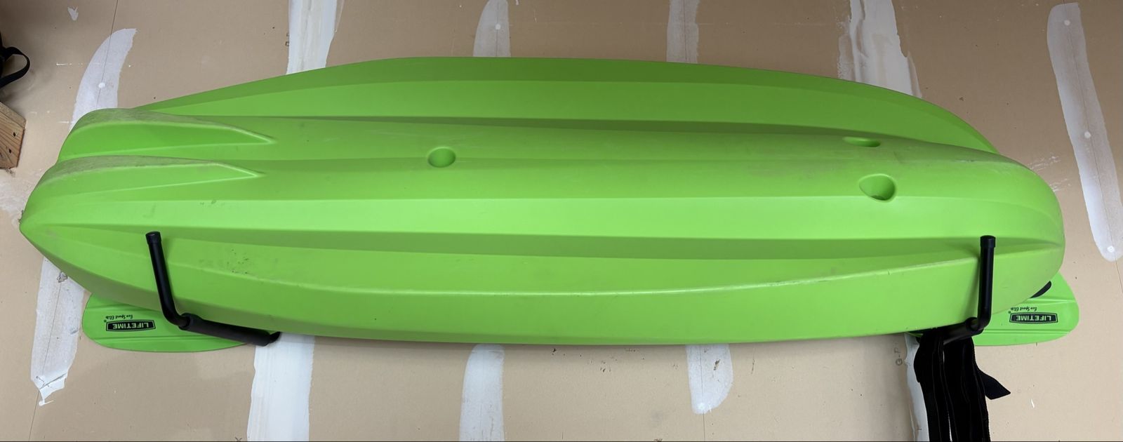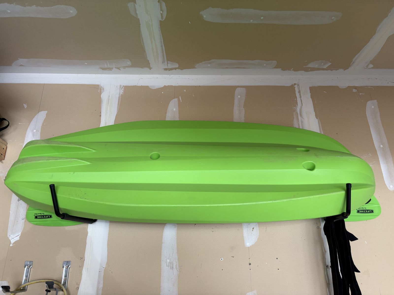 Great kids kayak with paddle. We are moving out of state and clearing out the garage. Not much use, always stored in the garage. I also have a kayak storage system if interested. If you have a family getting into the sport we have 3 kayaks for sale; one sit in side, one sit on top, and a kids sit on top all come with paddles.