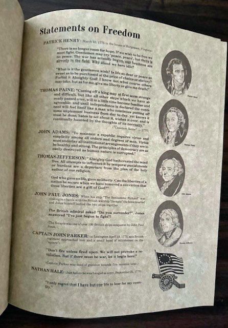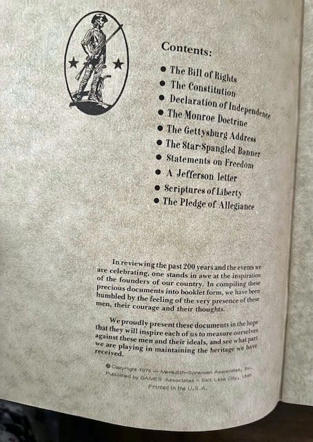 "In reviewing the past 200 years and the events we are celebrating, one stands in awe at the inspiration of the founders of our country. In compiling these precious documents into booklet form, we have been humbled by the feeling of the very presence of these men, their courage and their thoughts."