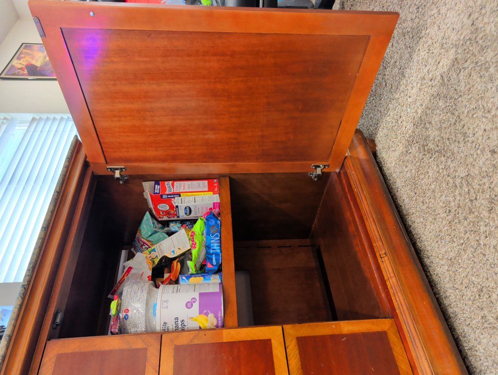 It's a good place for storage and it looks beautiful. It is very very heavy and takes a few people to move it. So please bring people to help you move it if you decide to buy it. I can't move it myself.