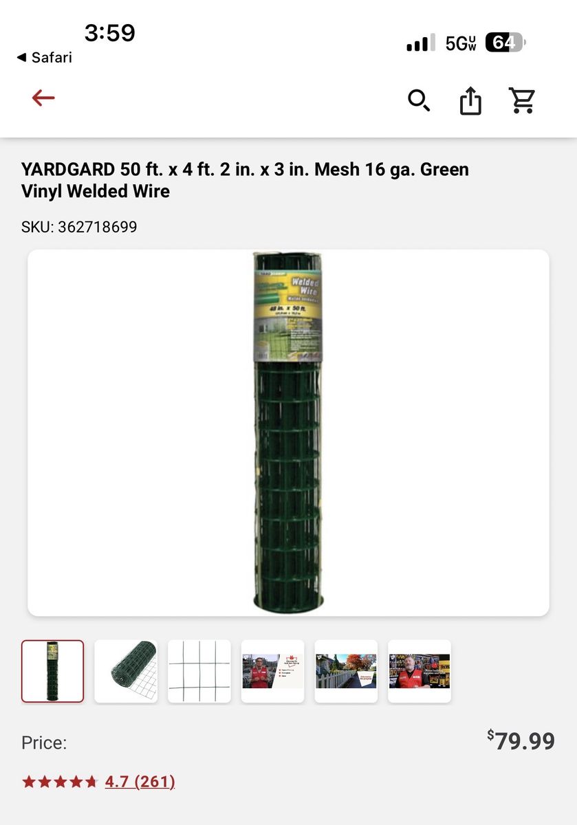 VenmoGreen PVC coated New never used. It has just been sitting for a year. I was going to put up a chicken fence with this but went a different direction. It’s currently listed on Tractor supply for $79.99