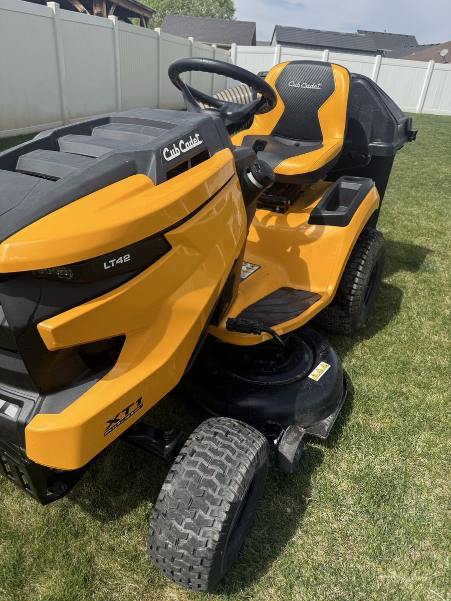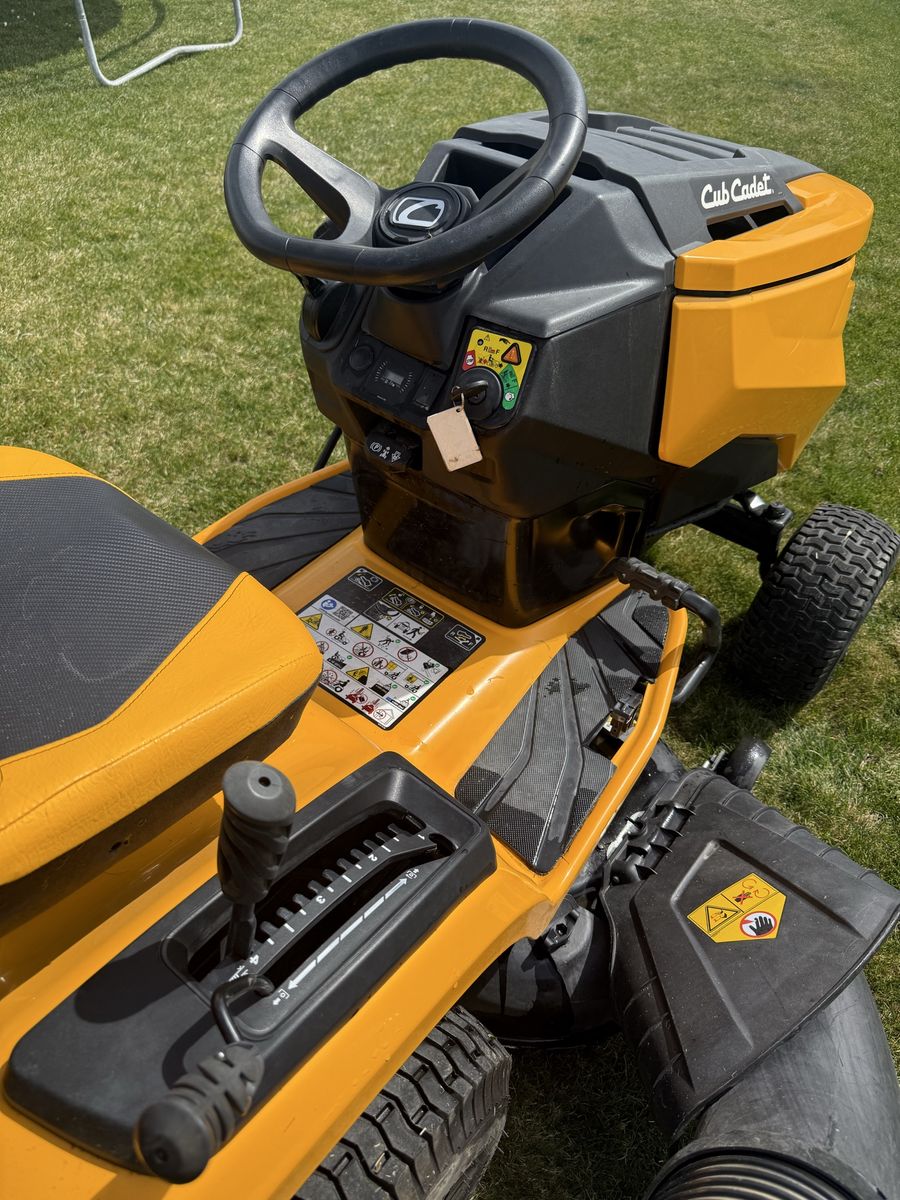 Cub Cadet XT1 Enduro Series riding lawnmower. Runs drives and cuts great!!! Just got a full service done to it. The blades were sharpened, fresh oil and new filters. It has a 19.5 hp Kohler engine and a 42 inch cutting deck. Comes also with a double bagger system to help keep your yard clean and perfect for the fall when you have to pick up leaves. Message anytime. Hablo español See Less