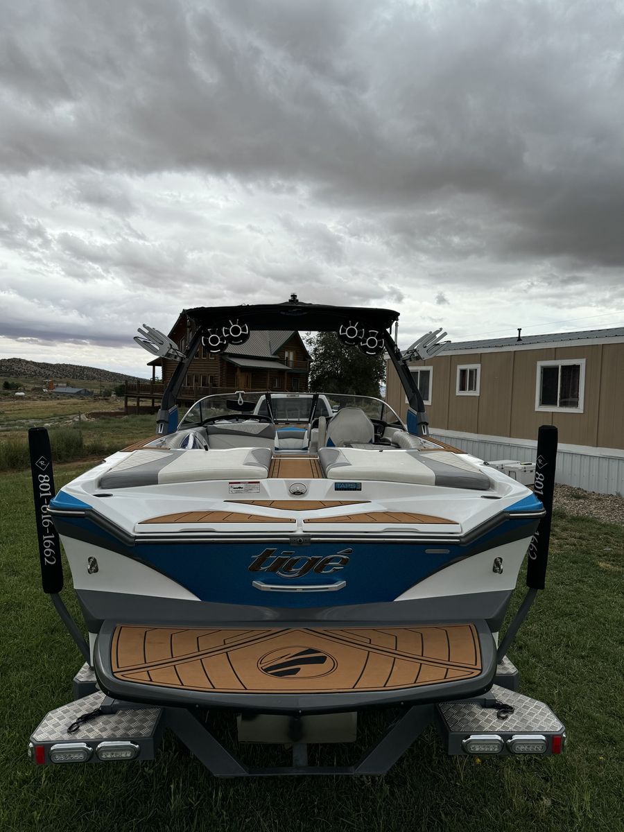 2017 Tige Z3 650 hrs. We have had this boat for 3 seasons and it’s been great!! Last year it had a full service and was used twice! This was our first surf/wake boat and it was a great starter as now we are ready for something a little newer. We love this boat and continue to get compliments on it every time we go out! Boat has the 6.2L 400 HP Raptor engine that can get you moving about 35 mph. It has 3750 lb of ballast in bow and stern that fill with just a push of a button. Has the taps 3 surf system that makes surfing super fast and easy to change from regular or goofy with fully customizable profiles for each rider. Also has surf remote to change surf on the go. It has a custom over the tower cover that keeps the boat way cleaner during storage and traveling. Has a complete Wet Sounds sound system with 4 rev 10” speakers on the tower that blast! Has complete speaker, tower, and under water lighting system. Tons of storage under the seats and in the rear when the ballast bags are empty! Has alpha E2 power tower that makes setting up quick and easy! We just put all new tires plus spare on the boat trailer at the end of last season! Boat trailer has collapsable tongue. Will also come with prop pulling kit and an extra prop that will need to be either replaced or reshaped. Also has a brand new acme spare prop. We’ve only ever had this boat on lake powell. There are a few seats in the high traffic areas that are starting to show a little wear. Call or text with any questions!!