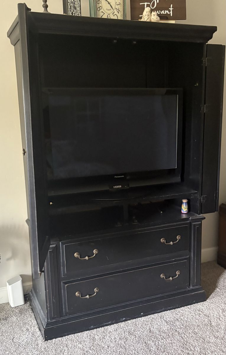 VenmoGood condition. 2 Drawers, fits a 42 inch tv and the tv currently in the hutch you can have with it if you'd like.