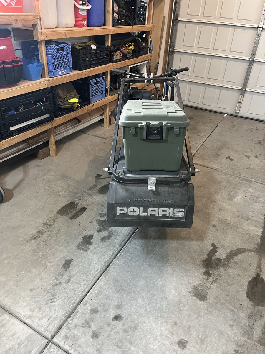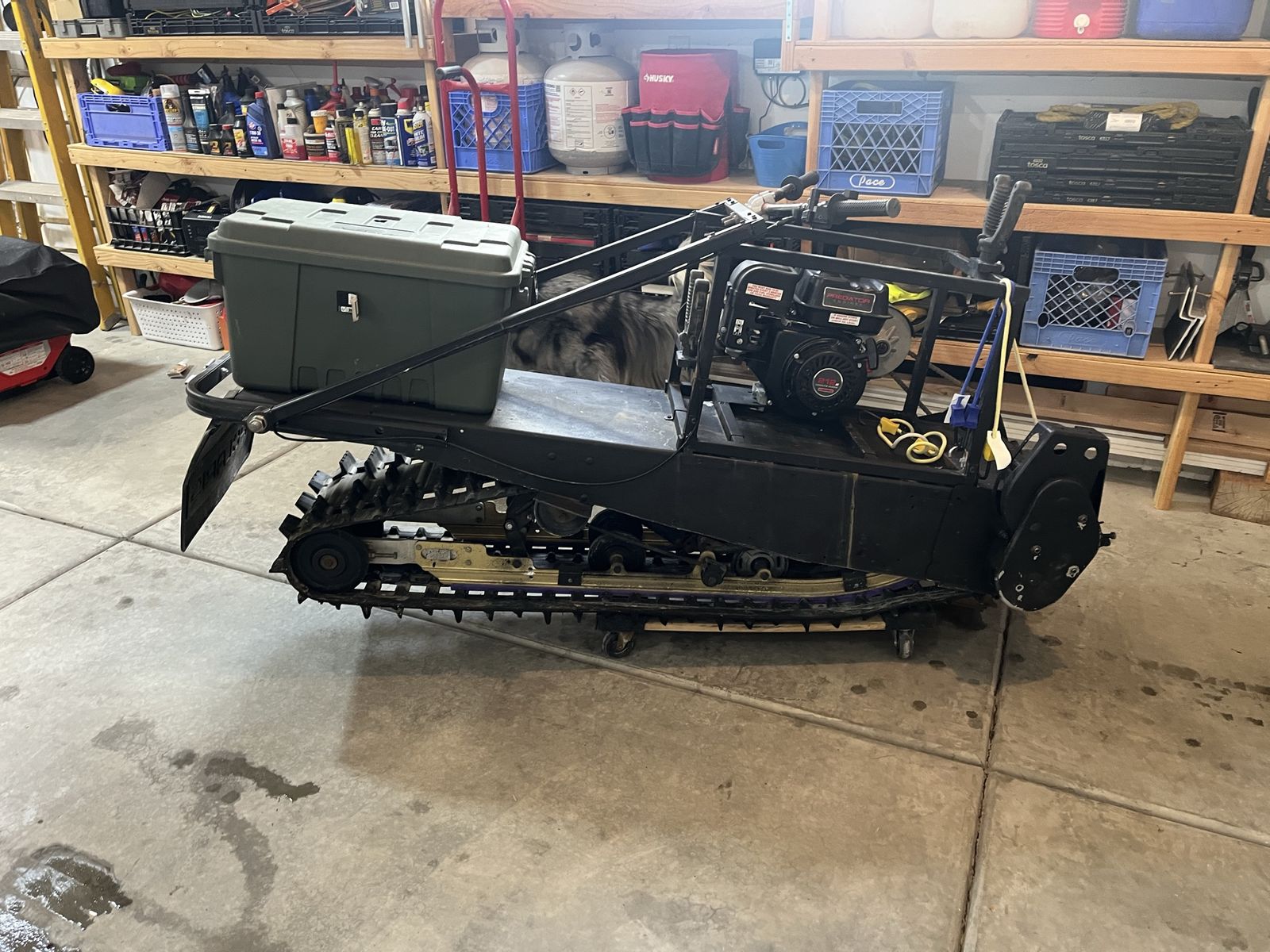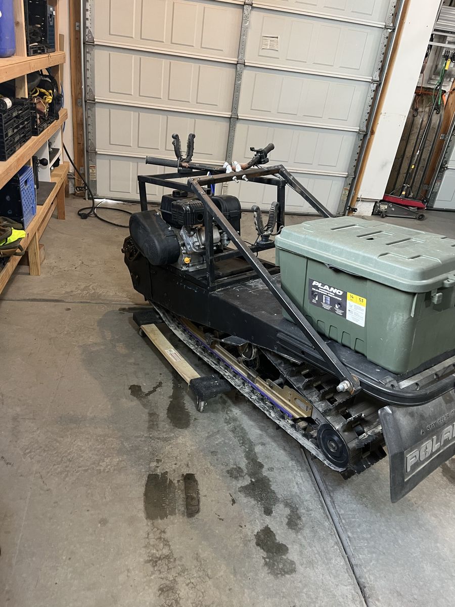 Ice fishing track sled. Built from a Polaris 550. Has the Predator 212 motor. Runs strong. I pulled myself and two full sleds with zero issues. Did not use this past year as I now have a snowmobile. $1100 or best offer. Thanks for looking.