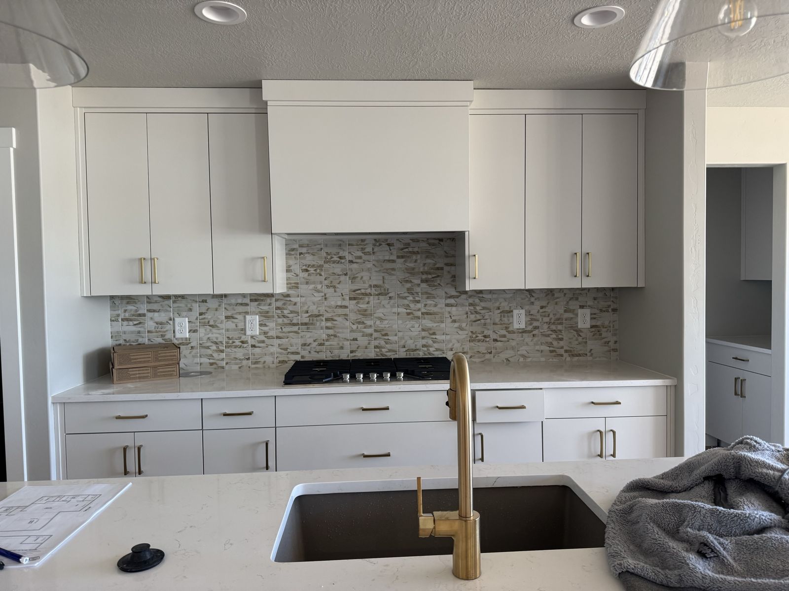 ApplePayFull set of kitchen cabinets, quartz countertops, gold pulls, and lighting fixtures that match. Cabinets are from a brand new home (built in 2025). The layout of the home was remodeled shortly after being purchased. Cabinets are white with an oak colored island. Island countertop could be cut down for other purposes. Price and product purchased is negotiable.