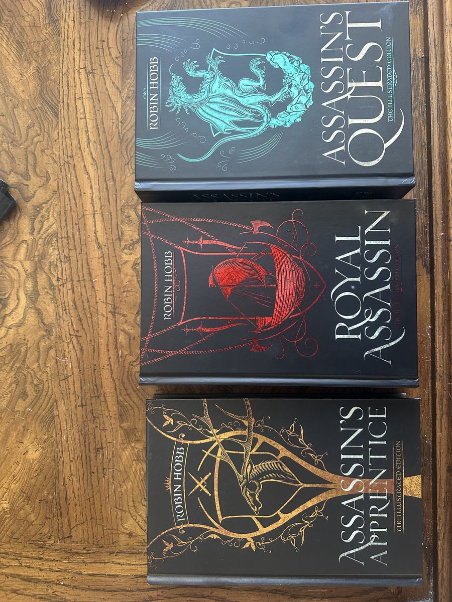 Signed, hardcover illustrated Farseer Trilogy by Robin Hobb. Given as a gift, but I’ve never opened them. Perfect condition and binding