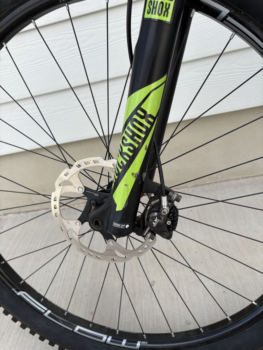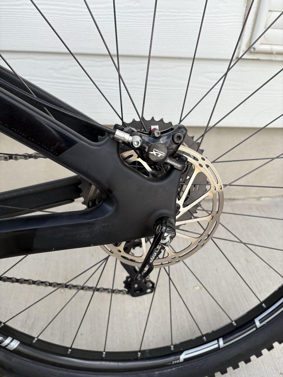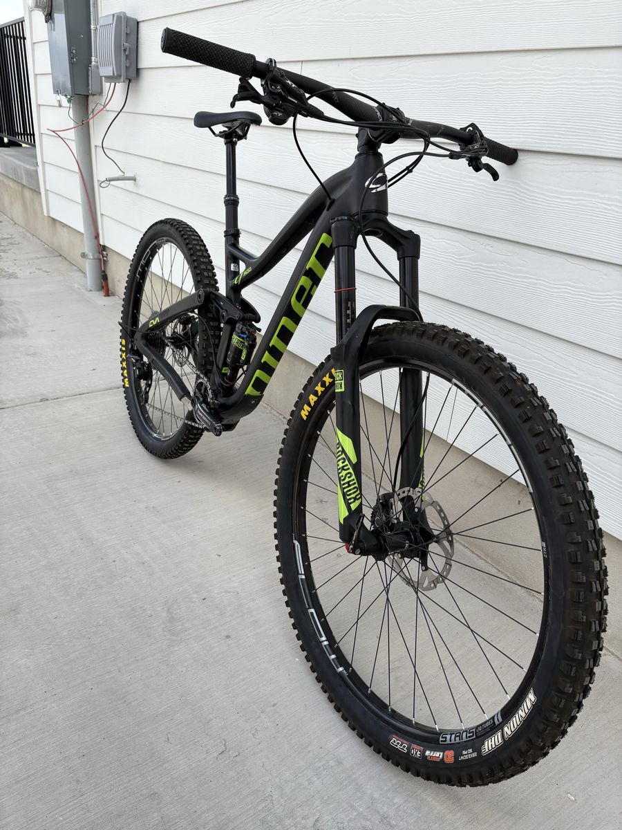 VenmoCarbon fiber full suspension mountain bike has a matte black frame with neon green accents. This 2016 Niner RIP 9 RDO features a RockShox Lyrik fork and RockShox Monarch Plus rear shock. It is equipped with a Shimano XT 1x11 drivetrain, RaceFace Turbine cranks, and Shimano XT hydraulic disc brakes. The 29-inch wheels are Stans NoTubes ZTR Flow MK3 with Maxxis Minion DHF and DHR II tires. It includes a dropper seatpost and RaceFace handlebars.