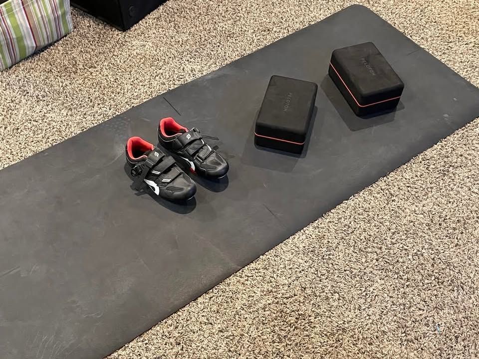 Comes with pad underneath as well as a yoga mat and yoga blocks.