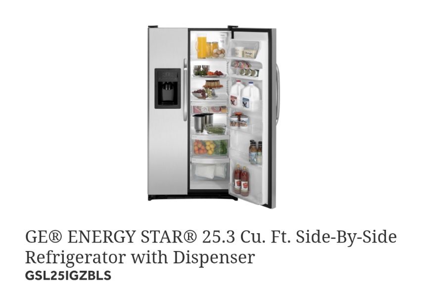 ApplePay25.3 cu. ft. GE Side-by-Side Refrigerator (Model: GSL25JGDB LS) + 3 brand new water filters