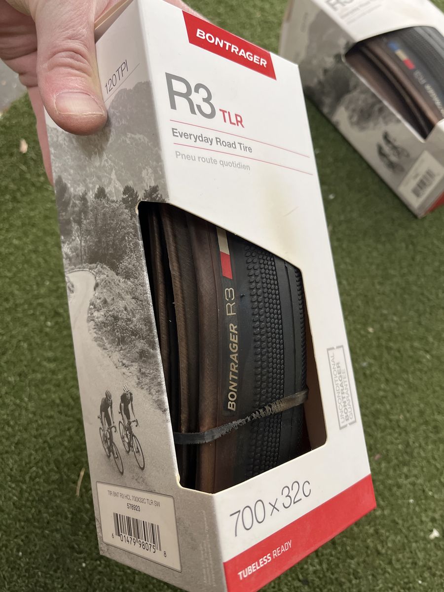 VenmoThis is a brand new set of Bontrager R3 TLR road tires. They feature dark tan side walls and a great everyday tread pattern.