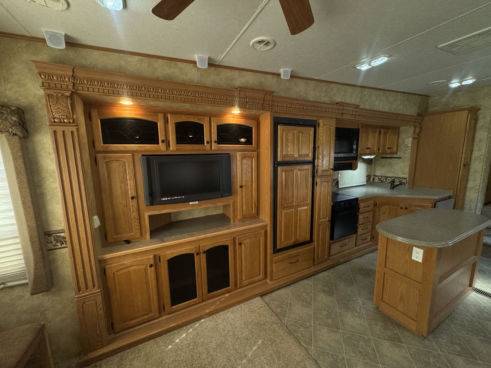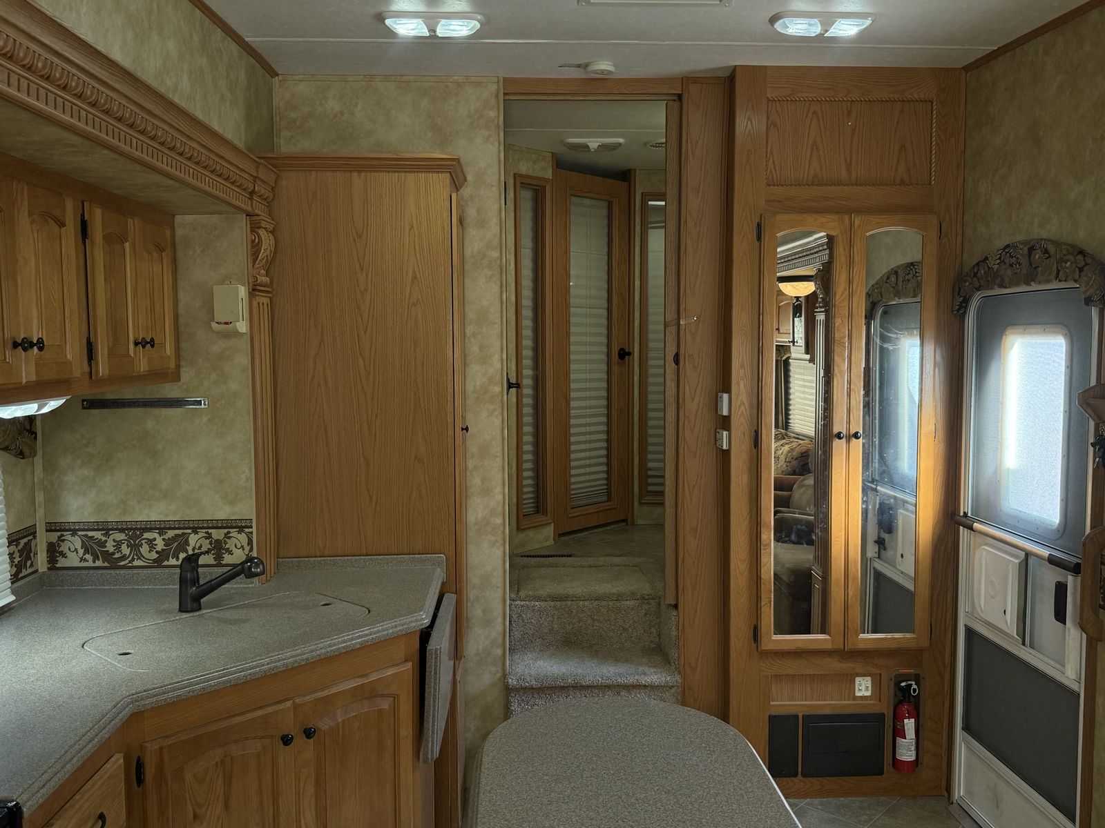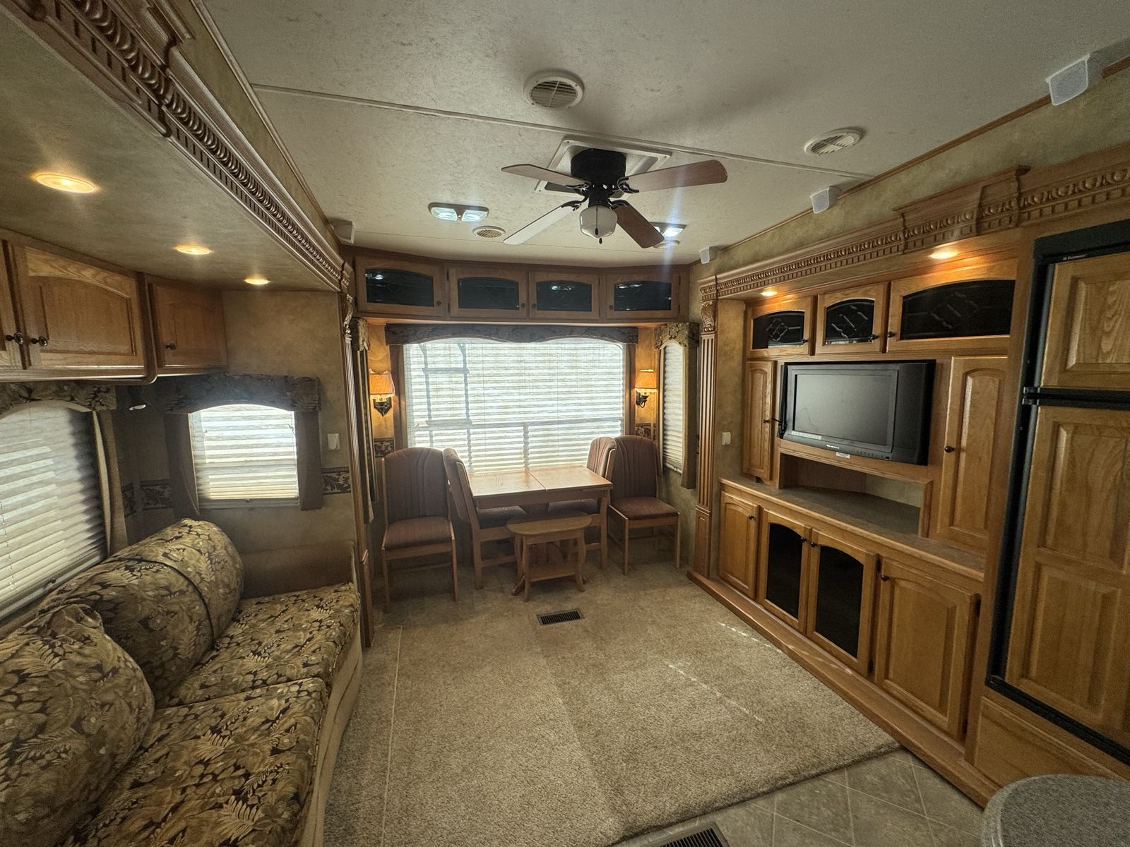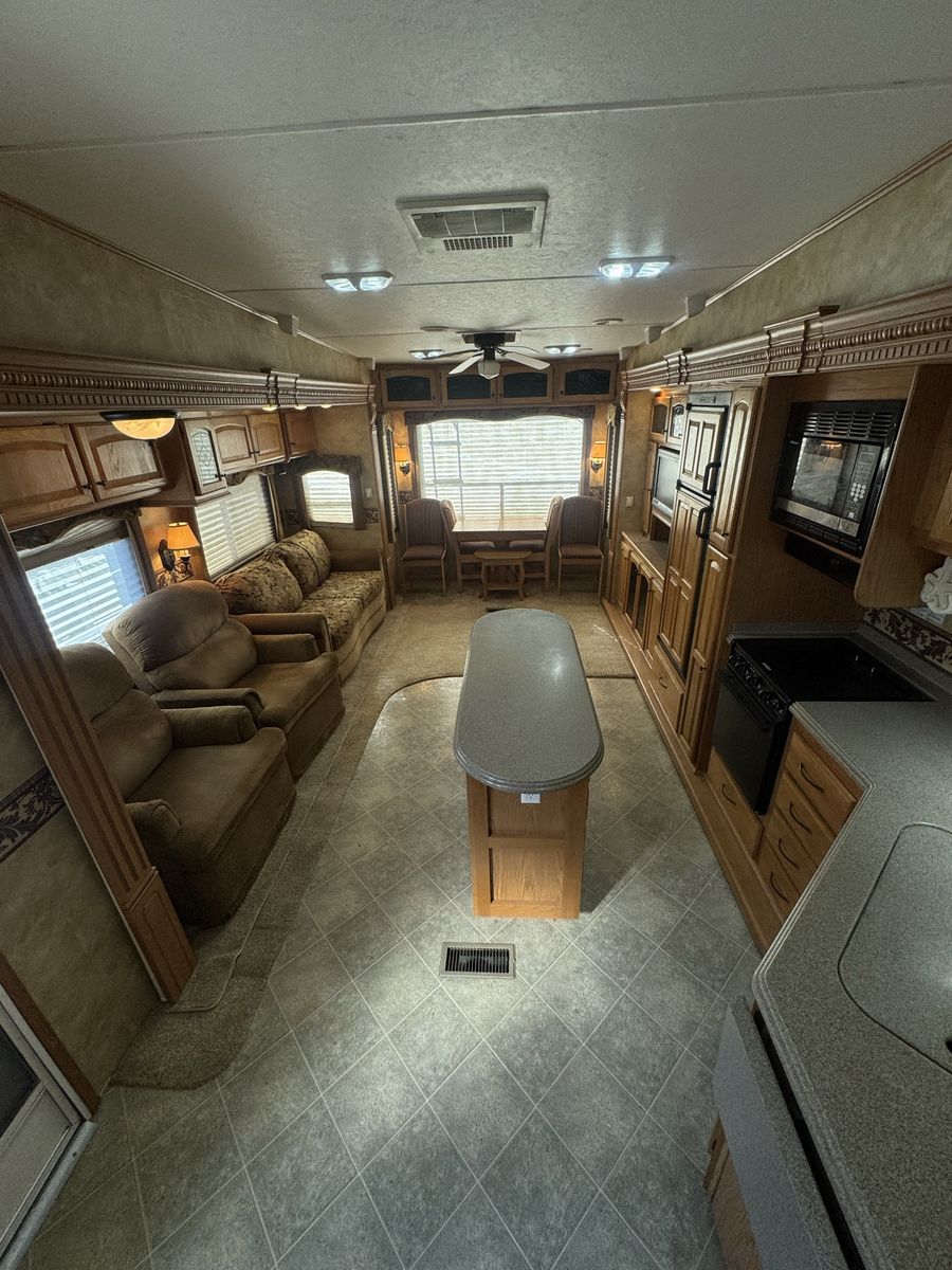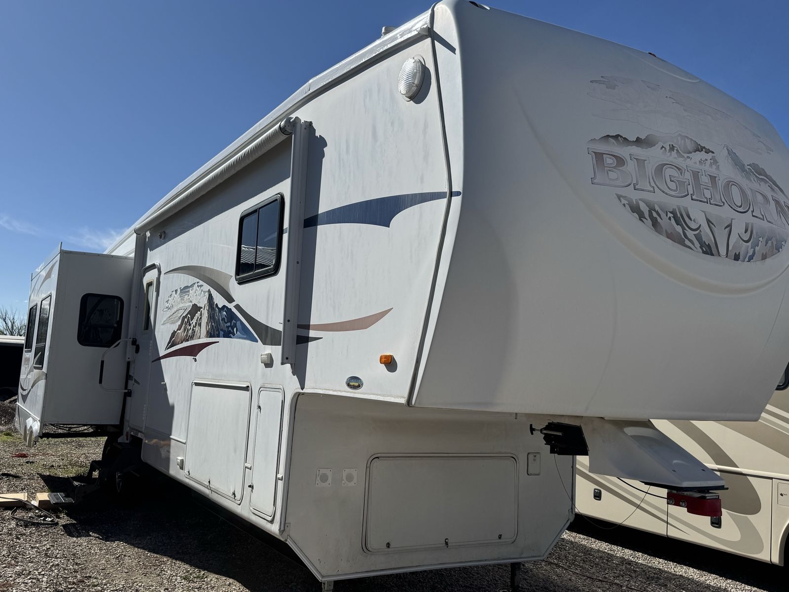 This 2008 Heartland Bighorn 3580RL is a luxury, triple-slideout fifth wheel. This trailer is in crazy good shape! Known for its rear living (RL) layout, this model features upgraded woodwork with Corian countertops It comes with a 12-gallon water heater, 3 way fridge, gas and electric water heaters, upgraded furnace, 75 gallon fresh water tank, large holding tanks (90g gray/45g black), and a heated/enclosed underbelly, making it suitable for extended stay or full-time RVing. It has washer dryer hookups, walk-in closet space, central vacuum system, a huge garage under the bedroom. This trailer has a “better than new” roof with all new upgraded roof vents. A new solar system was just installed. The slide seals have just been replaced.