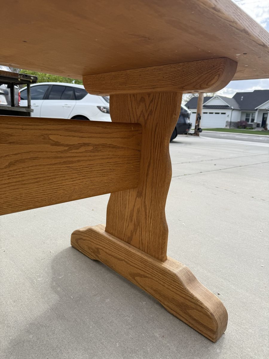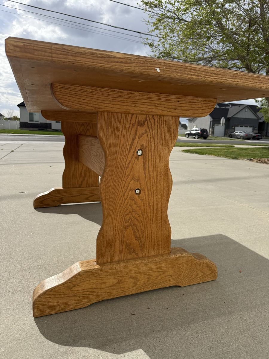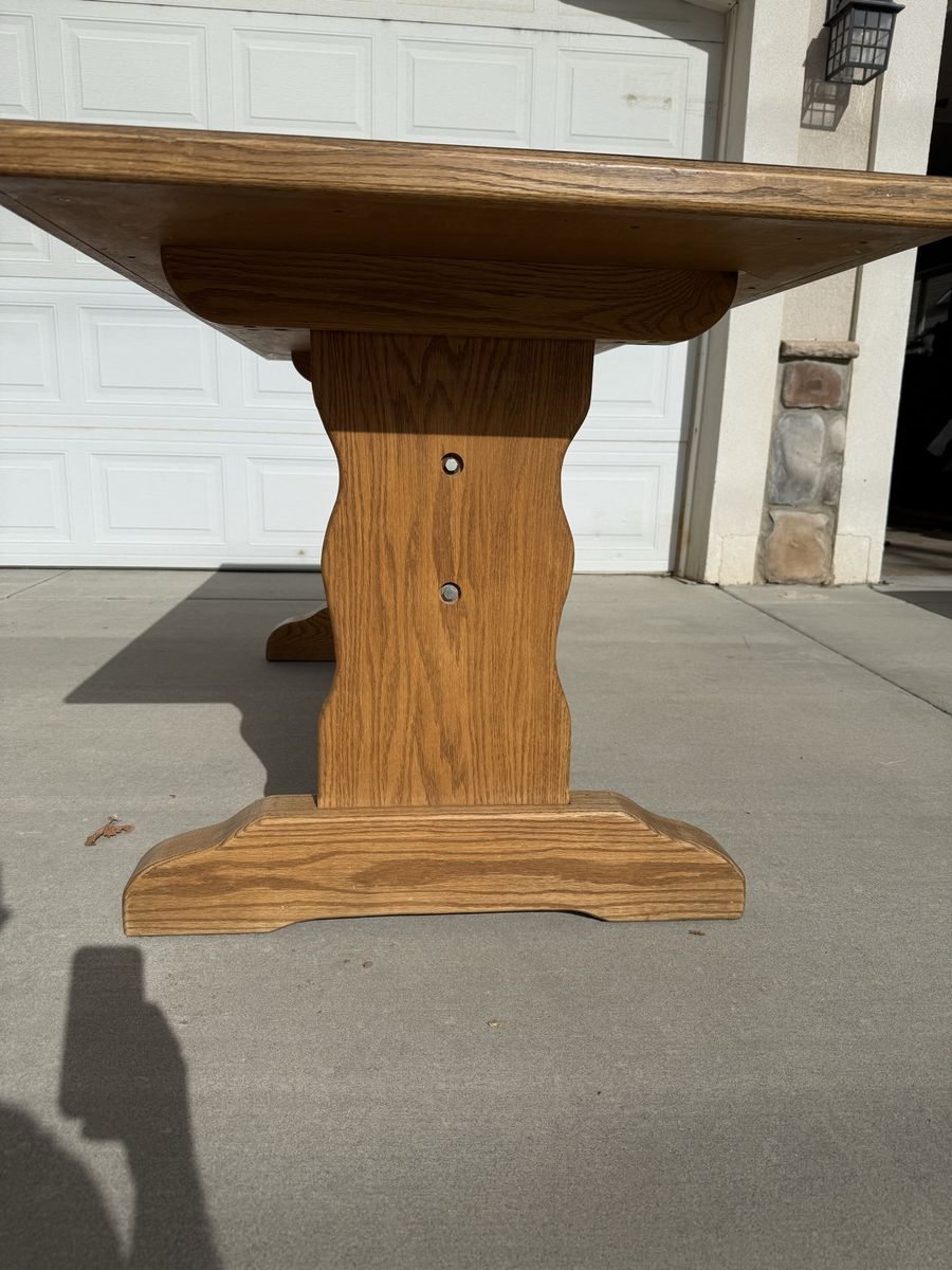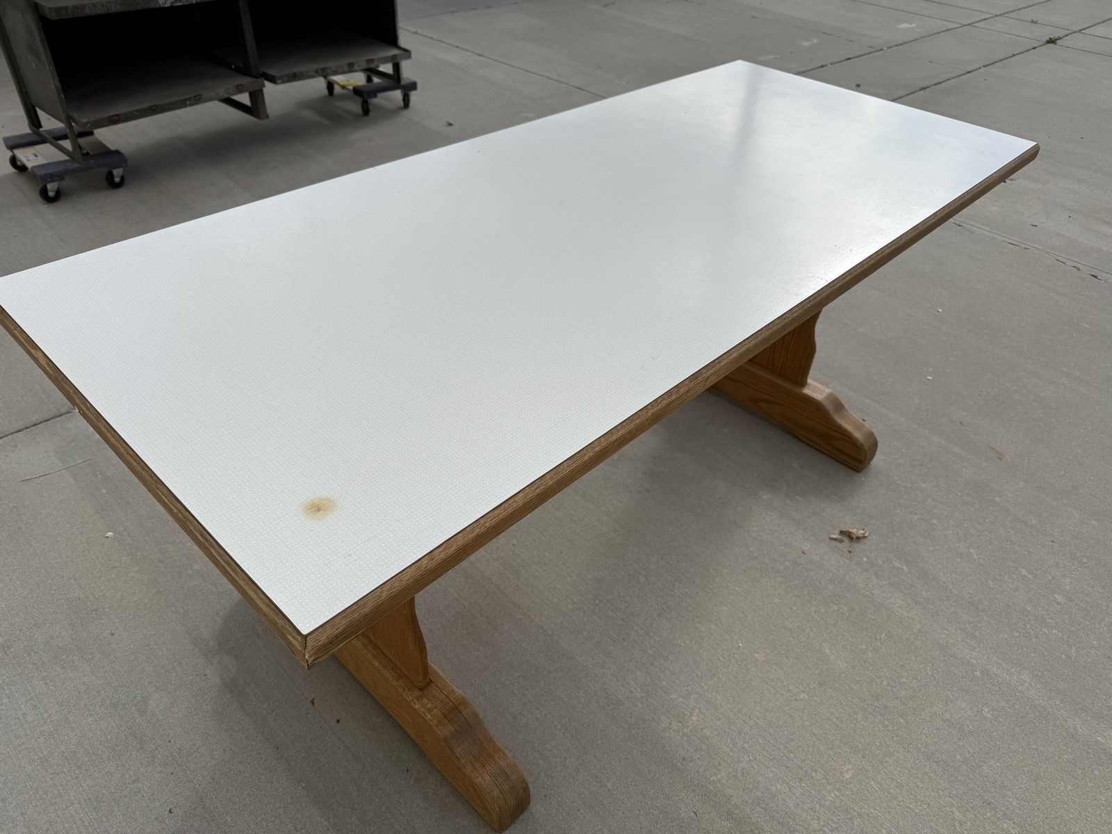 VenmoKitchen/craft table. Base is solid oak, top is oak ply with laminate (Formica) top and 3/4” oak banding. Dimensions: 30 1/2” wide 70 1/2” long 31” tall