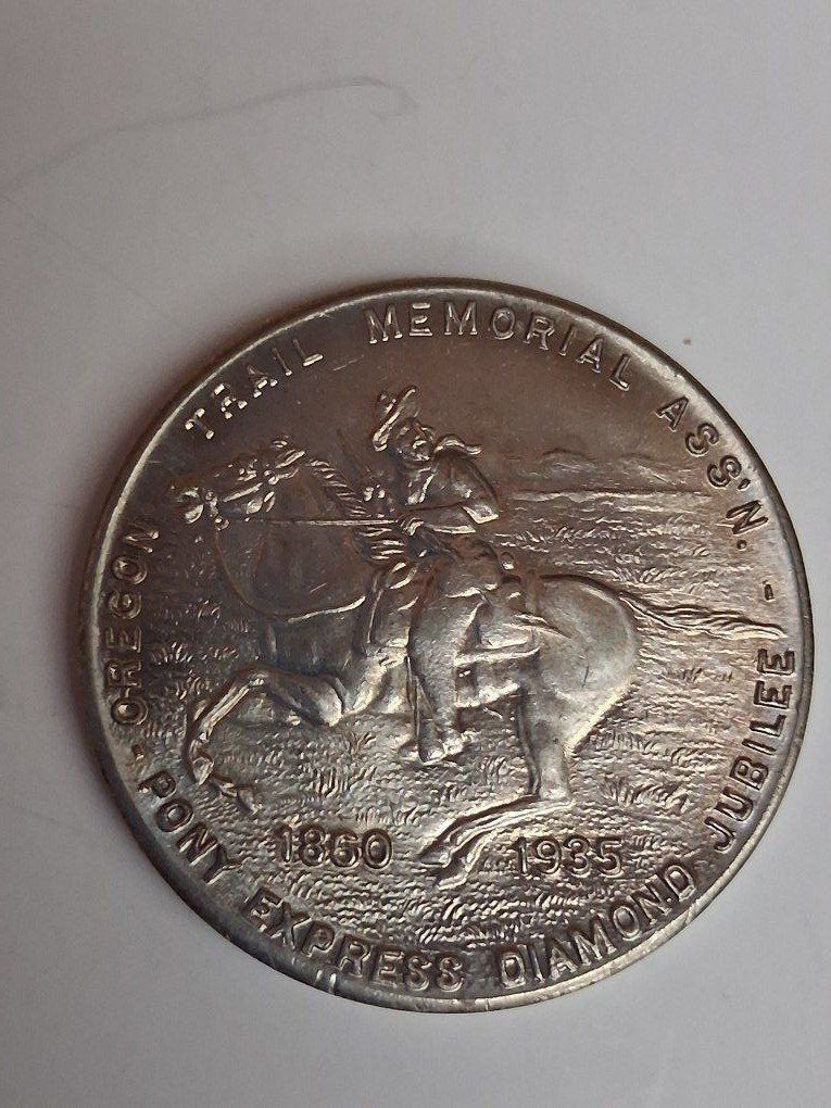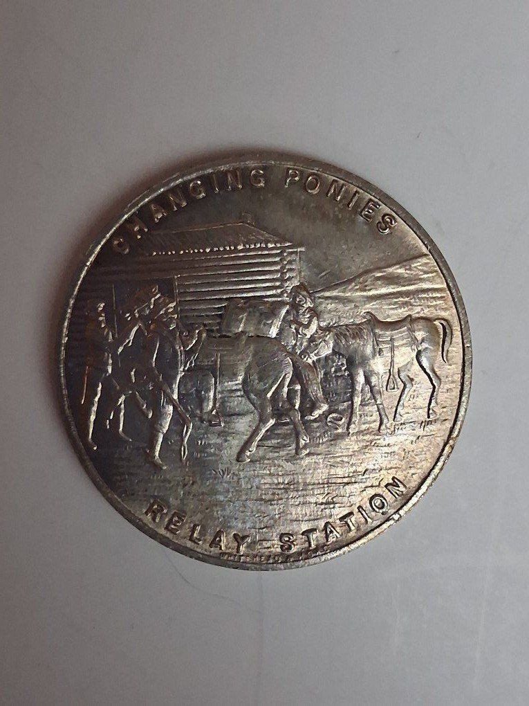 1860-1935 Pony Express Diamond Jubilee, Oregon Trail Commemorative. Changing ponys and relay station. I have 4 Mint coins/ tokens selling each separately for price listed.