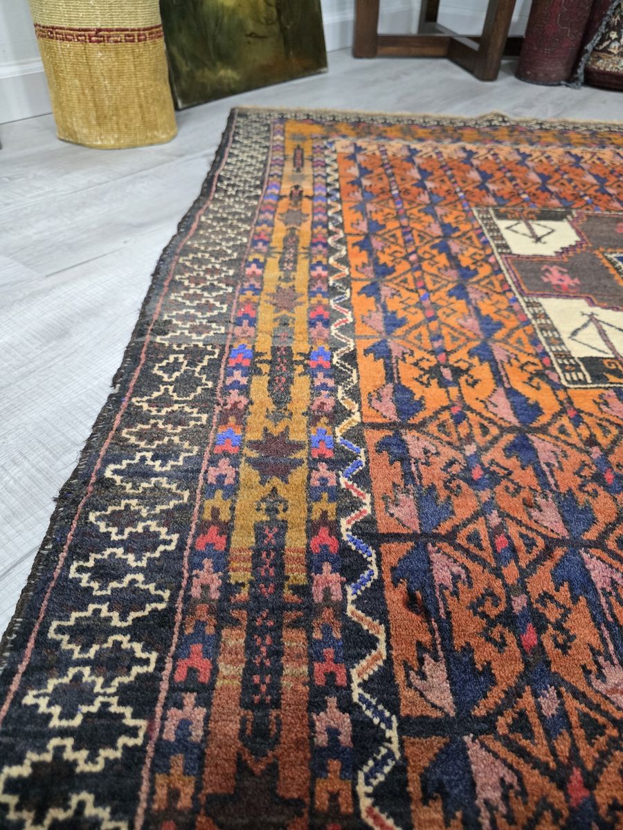 VenmoBreathtaking antique and rare Turkmen rug. There are a couple characteristics that make this rug rarer than others. For example, the medallion patterns and the colors. This one is characterized mainly by burnt orange with accents of indigo and ivory, which is not typical. Rare in design and condition (relative to its age), this Turkmen piece is not just decor--it’s a collectible artifact.