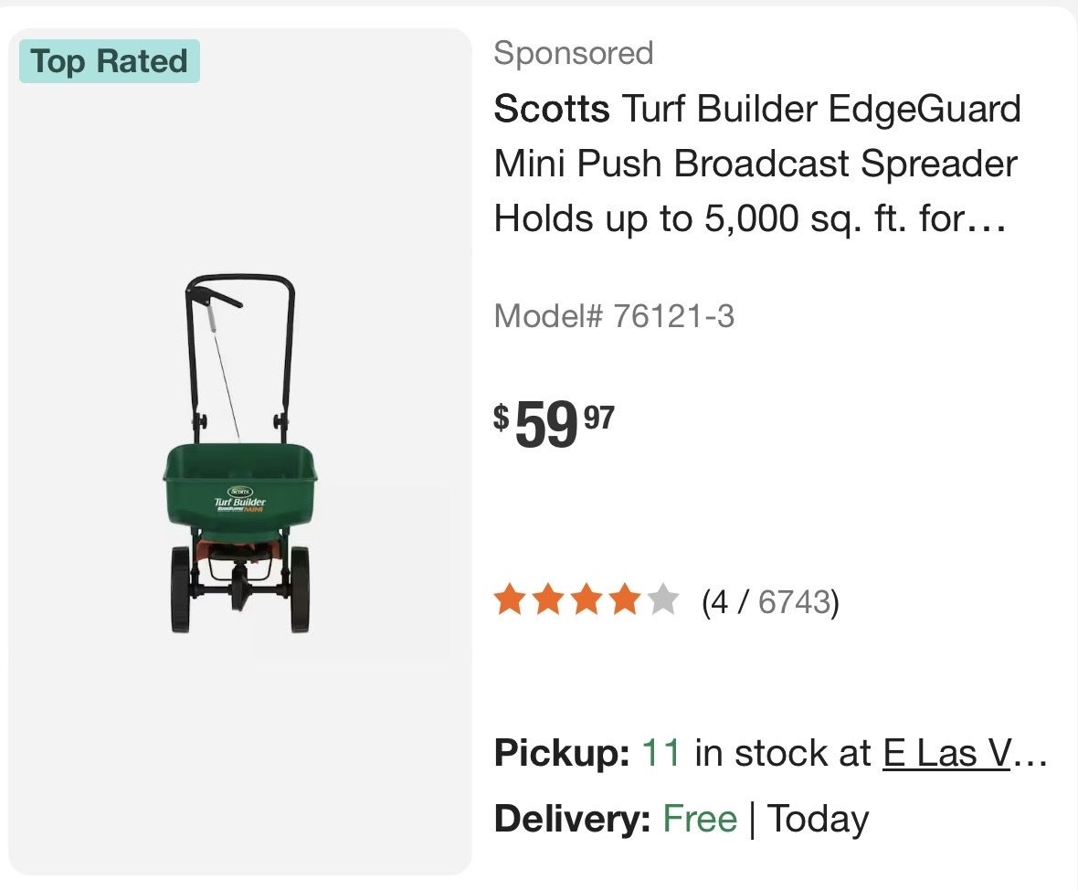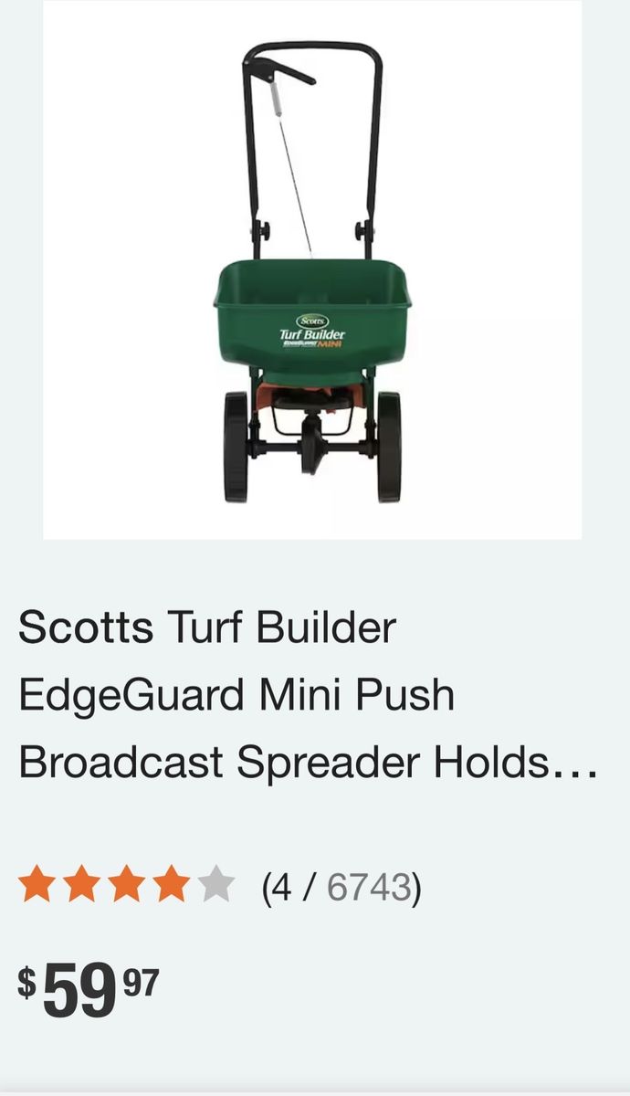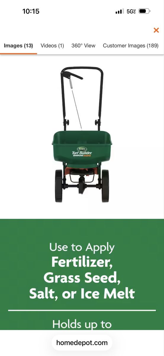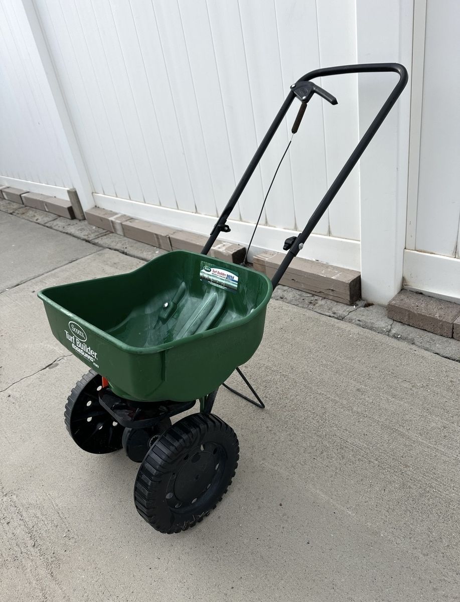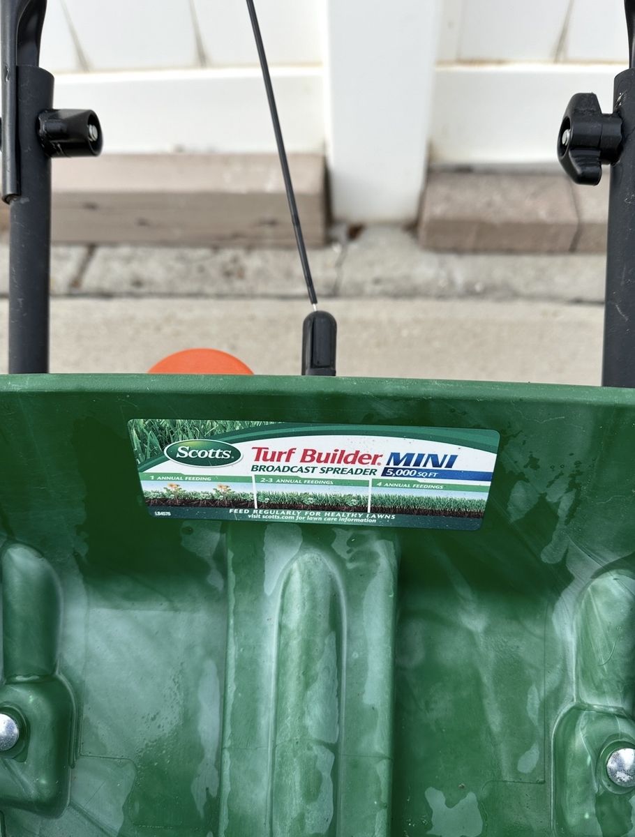 VenmoTurf Builder EdgeGuard Mini Push Broadcast Spreader Holds up to 5,000 sq. ft. for Seed, Fertilizer, Salt, Ice Melt. New around $65? Serious inquiry only!