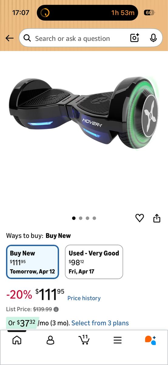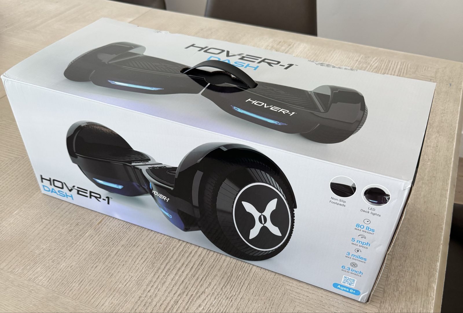 VenmoNew Hover-1 Dash hoverboard. Still in box, never used. Pulled out to test only. Max weight 80 lbs, max speed 5 mph, can go up to 3 miles. Has 6.3 inch solid wheels. Charger and manual included. Great for ages 8+. $80 OBO