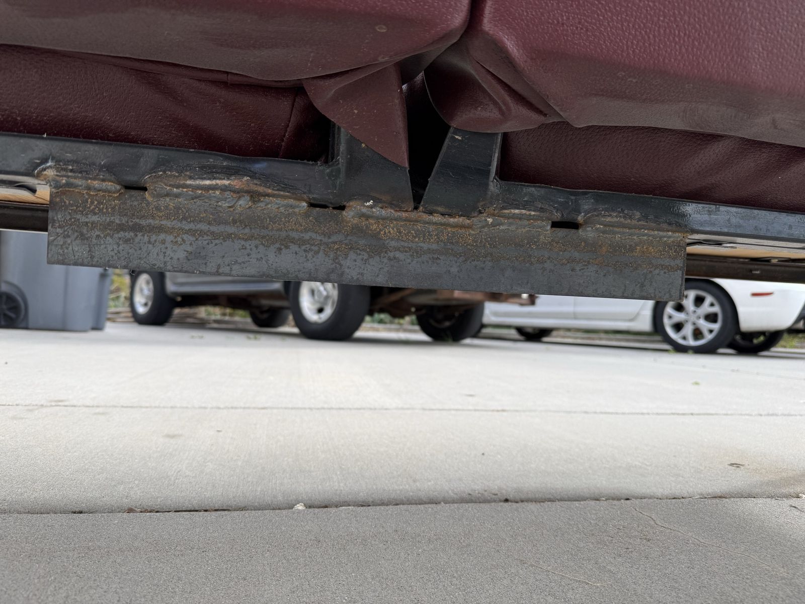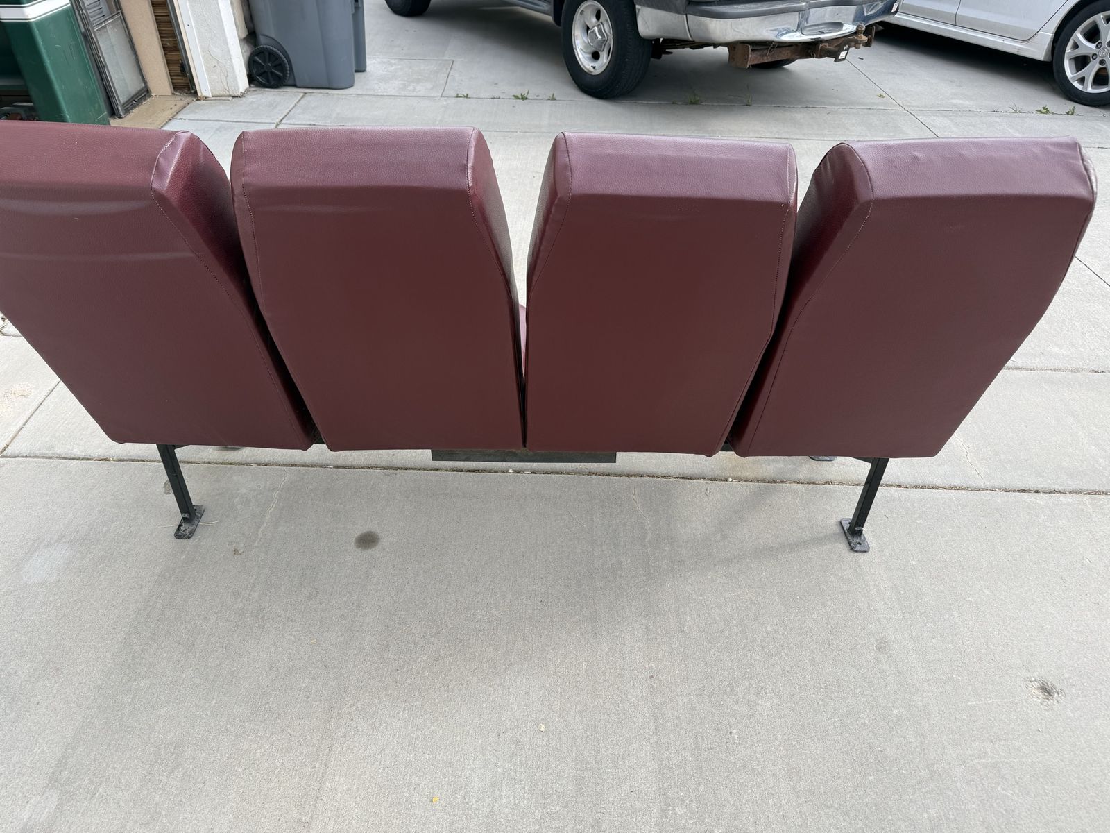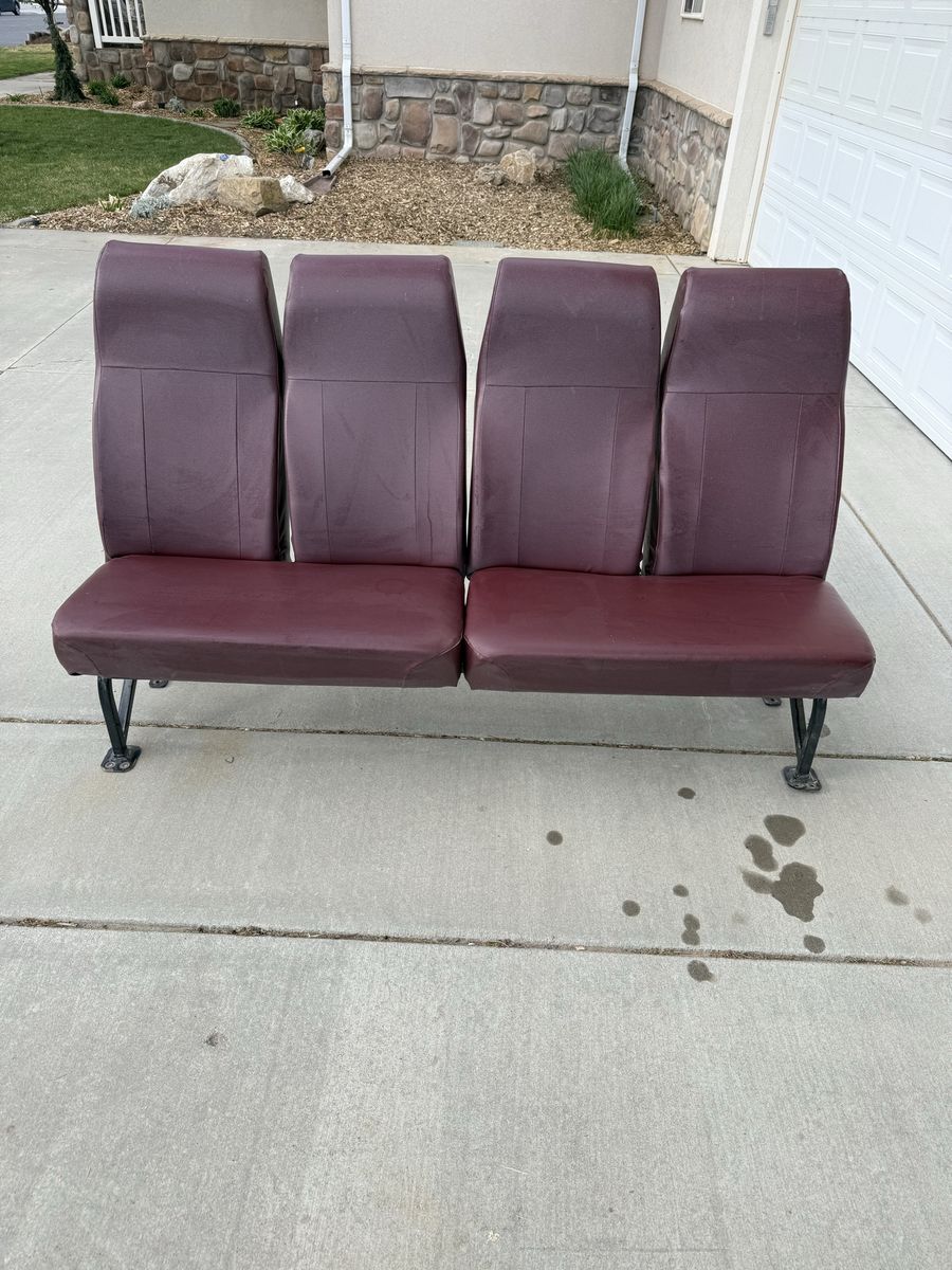 VenmoOne of a kind shop couch. Made from two bus seats. A little back rest heavy so it is best against a wall or mounted to the floor. Dimensions: 72” long 25 1/2” wide 18” Seat height 35” total height