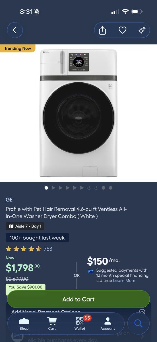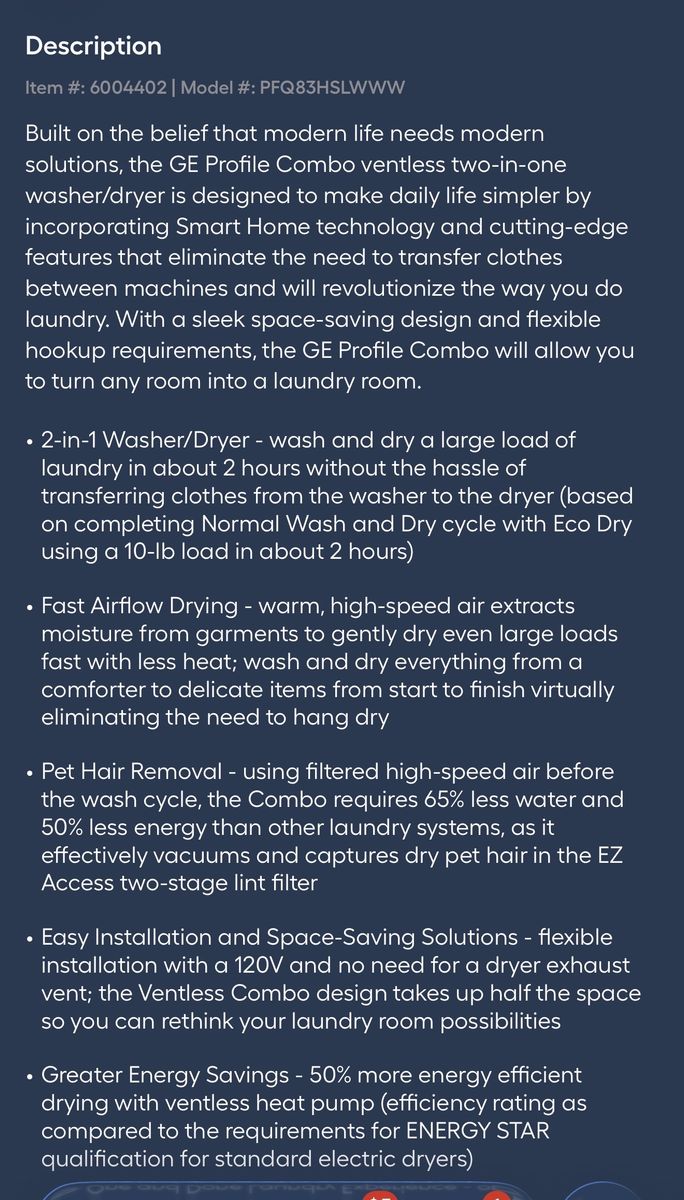 Selling a gently used GE Profile 2‑in‑1 washer/dryer combo. Bought from Lowe’s last fall for $1,600 and still runs perfectly. It was my mother’s unit, and after her passing we simply don’t have a need for it anymore. This a fantastic deal on this washer/dryer