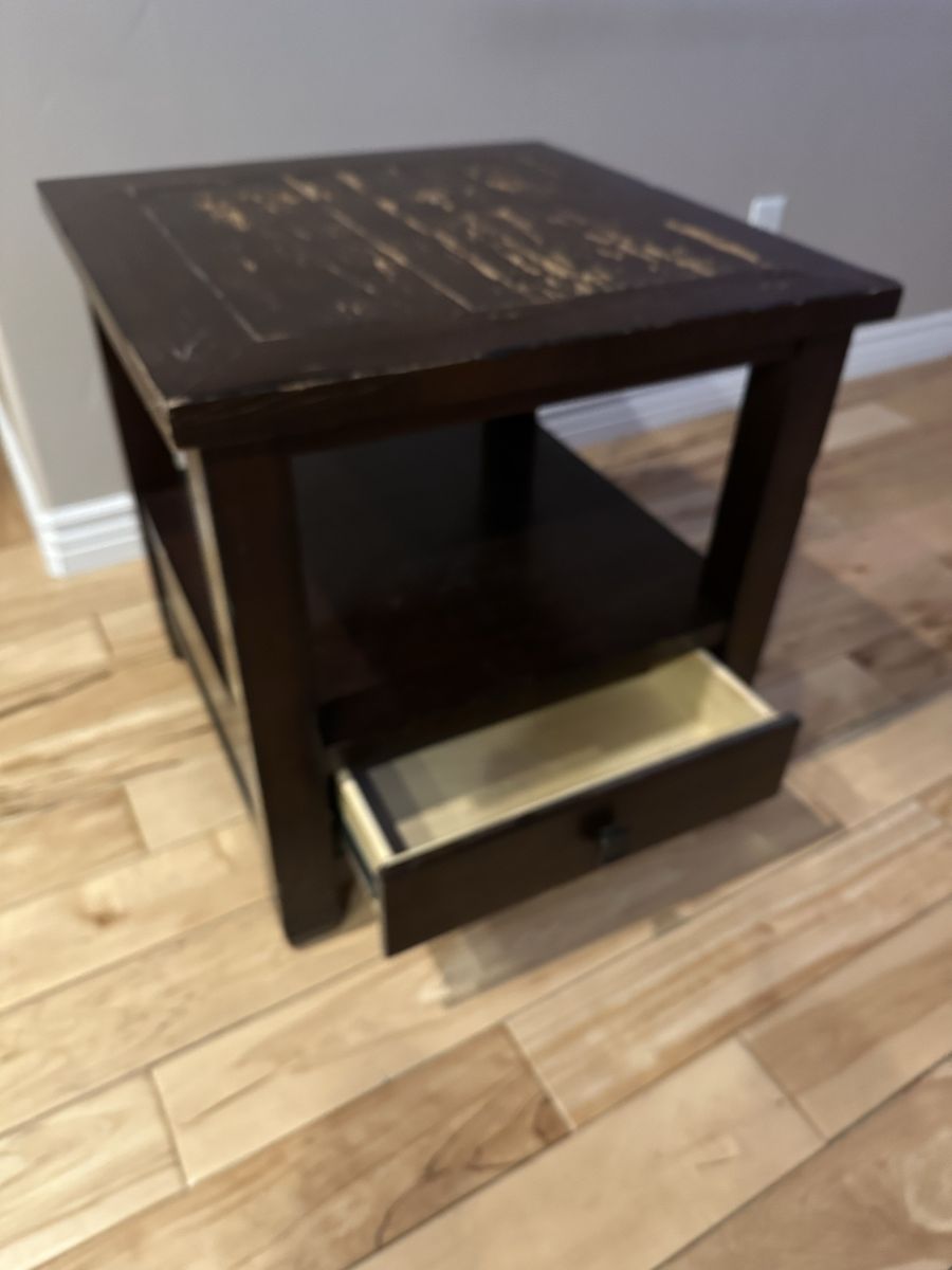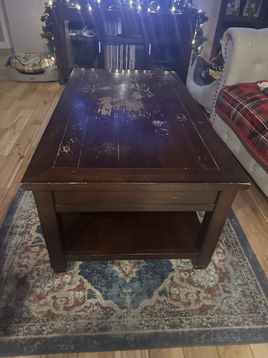 Free coffee and end table. Solid wood. Surface could use refinishing as seen in photos.