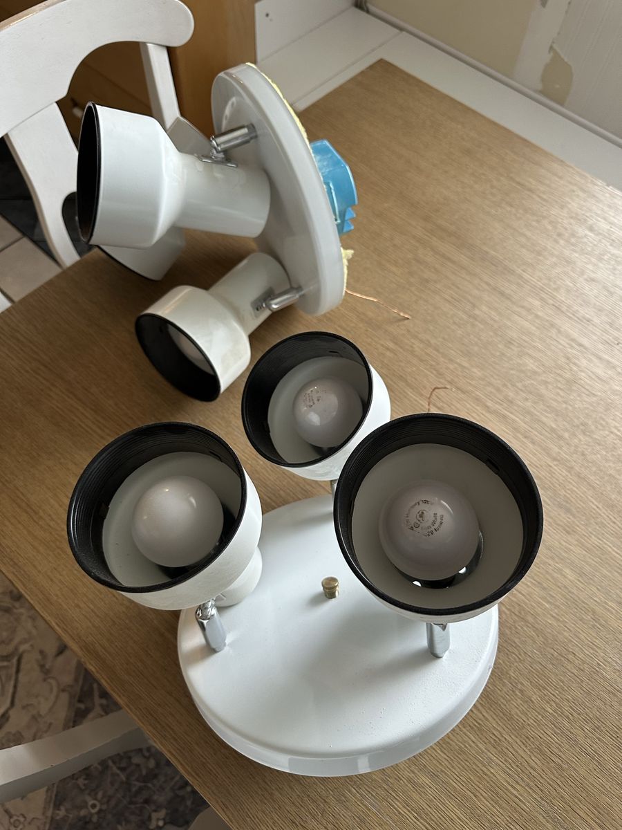 Two light fixtures. Each has 3 bulbs on arms that can be swiveled and adjusted. FCFS. Located north east Orem.