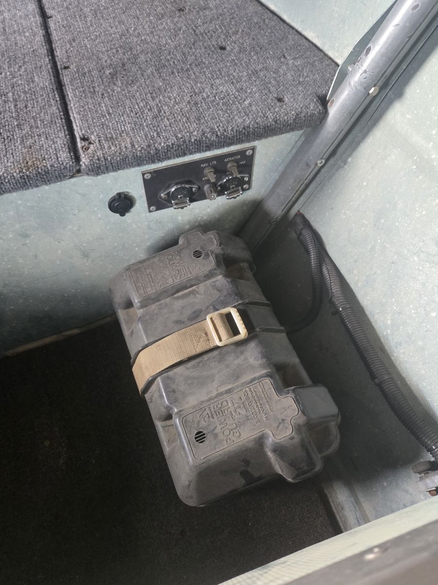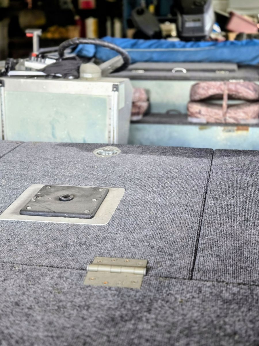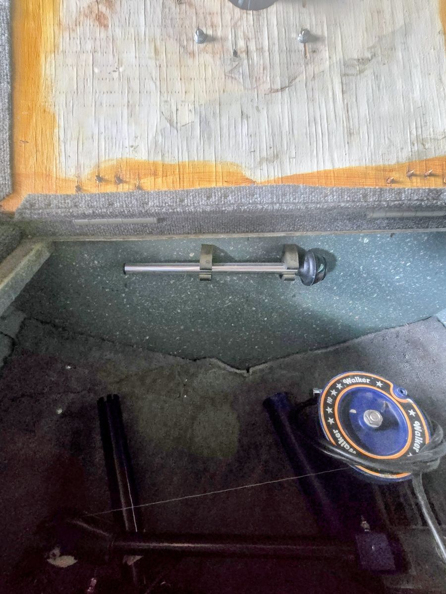 There is a large live well just behind the seats for quick and easy access, several storage areas both stern and aft, as well as under the seats. Light posts both stern and aft with secure storage for both when not in use, has easy drop swivel mount aft for easily lowering the anchor and a full bimini shade cover. New boat cover (which can be used while traveling) fish net, anchor, paddle and fire extinguisher included. Also has horn, compass, a lighter (in case you want to plug something else into the boat while fishing Boat is fully carpeted with marine grade high quality carpet. I'm sure I'm missing something you will see when you check it out!