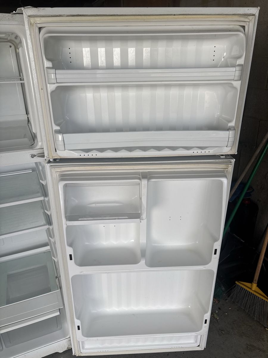 • Fridge + freezer both work great • Clean and ready to use • Some cosmetic wear from normal use