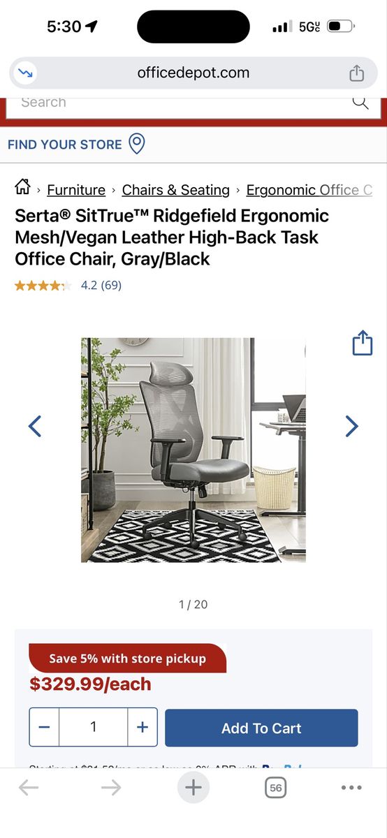 ApplePaySerta® SitTrue™ Ridgefield Ergonomic Mesh/Vegan Leather High-Back Task Office Chair. New, no damage. $300 OBO