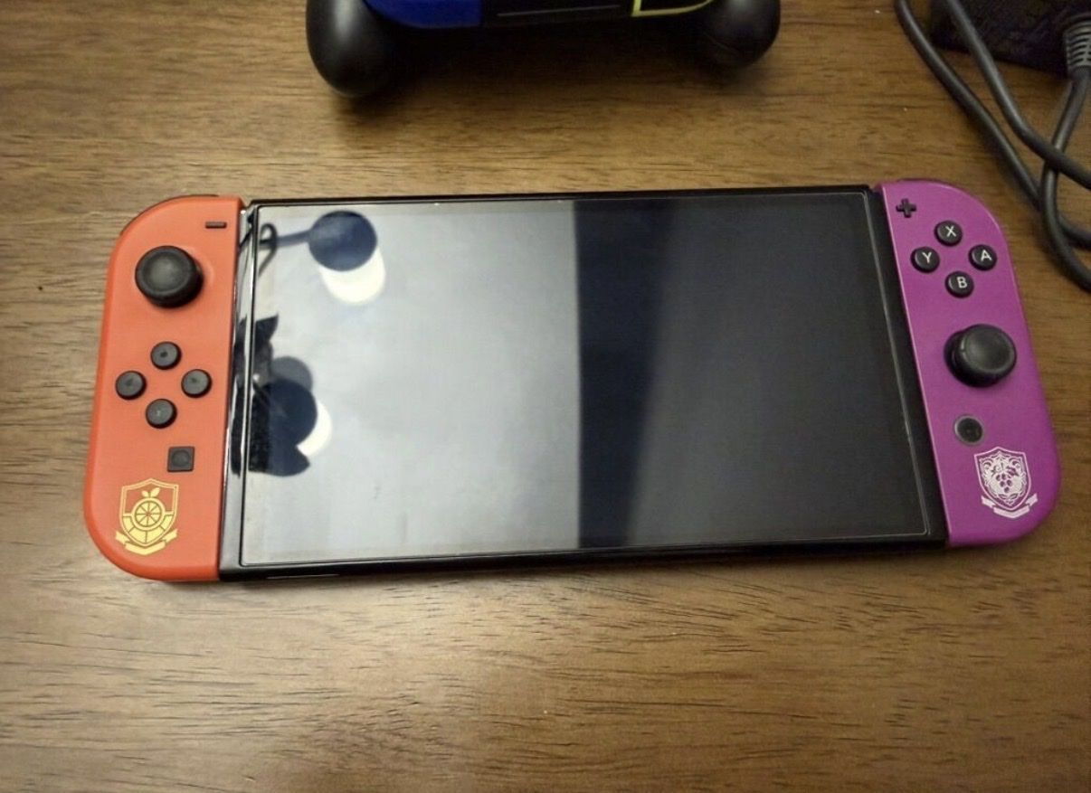 ZelleScarlet and violet oled 270$ Comes with console, joycons ,extra joycons, joycon bumpers, carrying case, charging cable, and dock located in eagle mountain near black ridge elementary