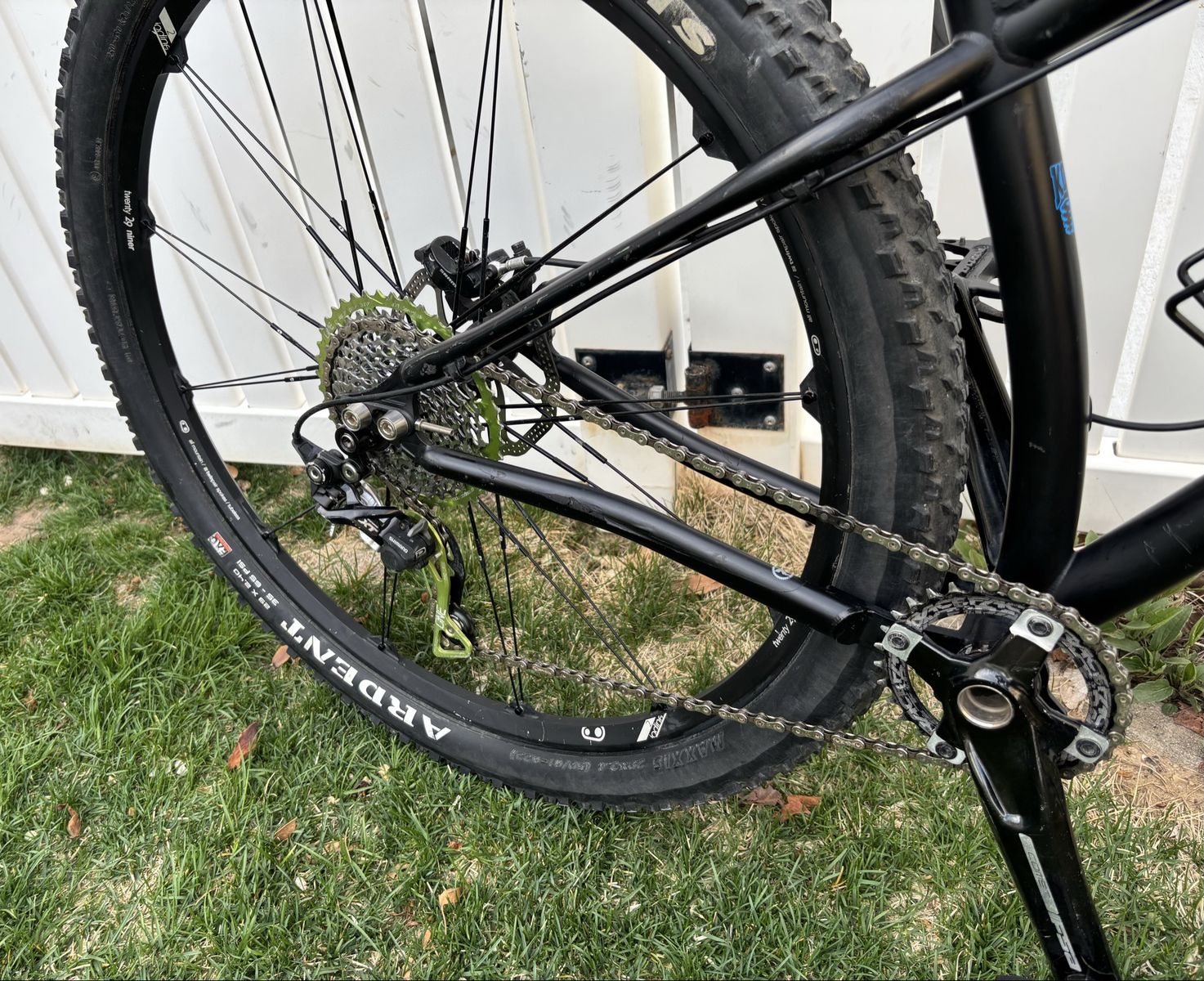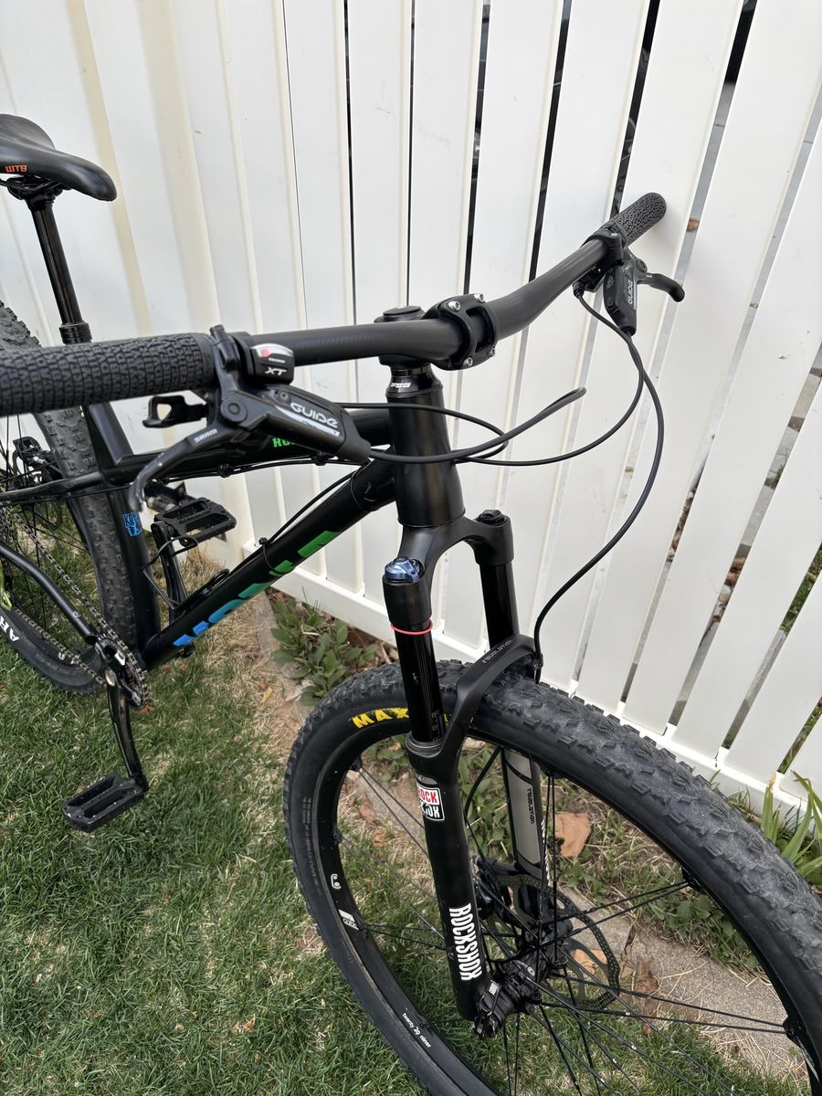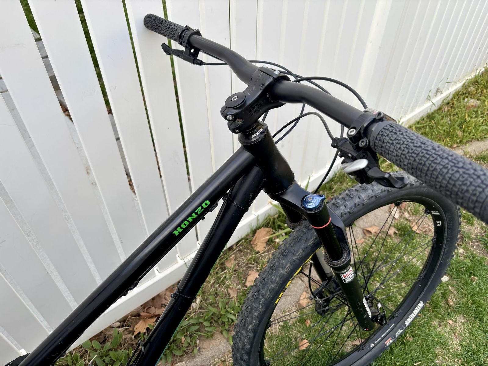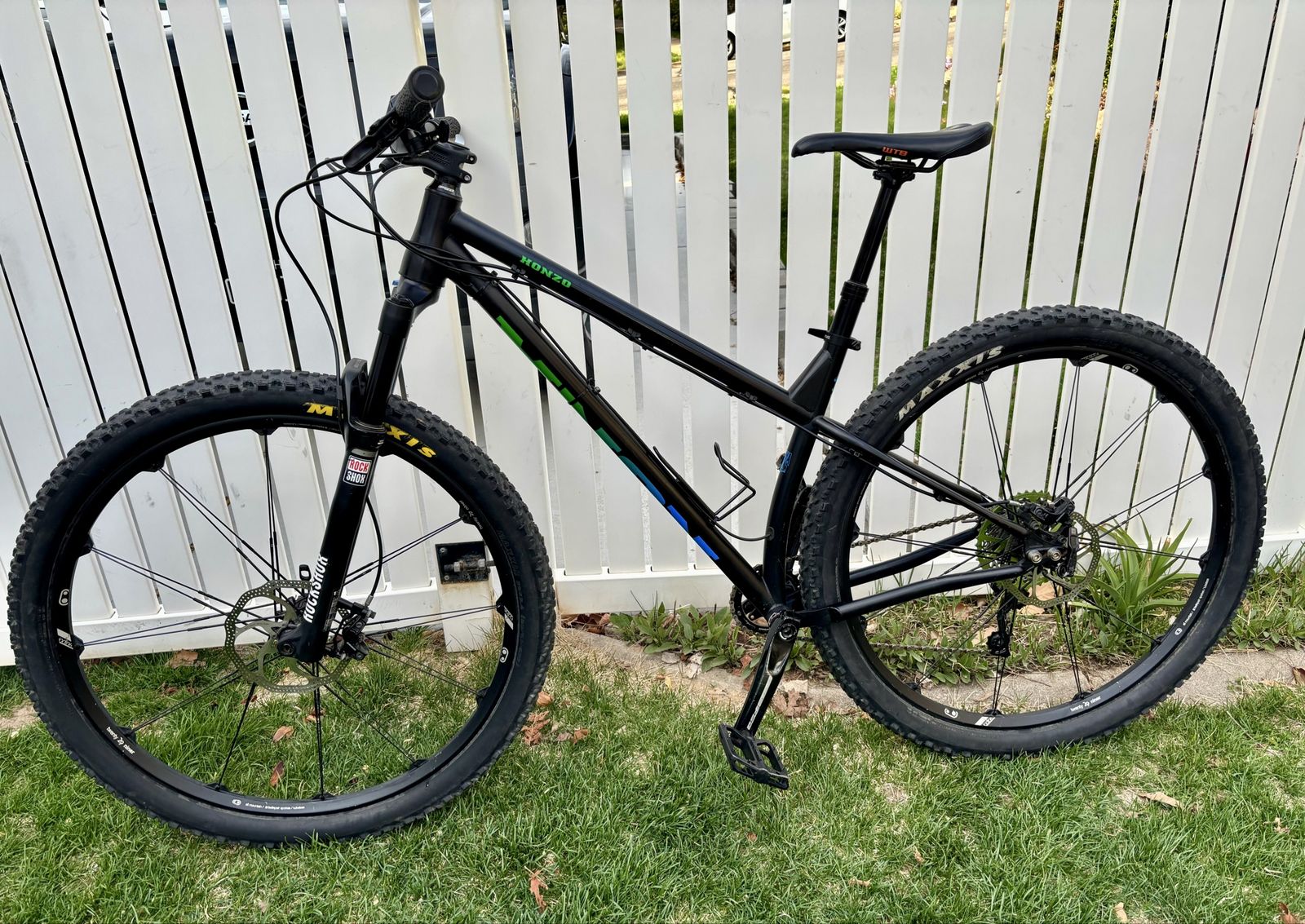 Medium steel frame. Custom build, Shimano XT 1x10 drivetrain, Crank Brothers Iodine 2 wheelset. Recently tuned, new dropper, grips, brakes bled, tubeless with fresh sealant. Has a few cosmetic scuffs, but it’s in great condition, ready for riding, needs nothing.