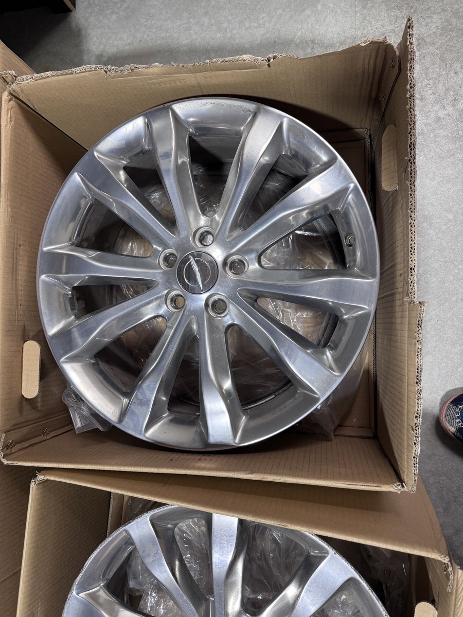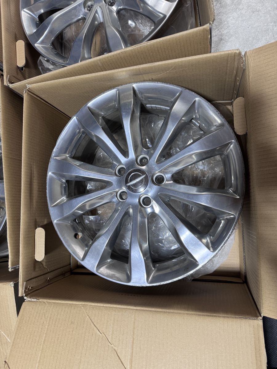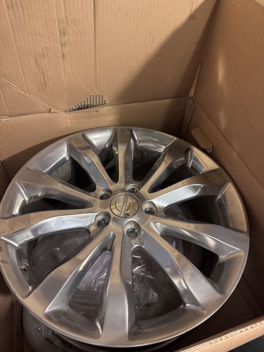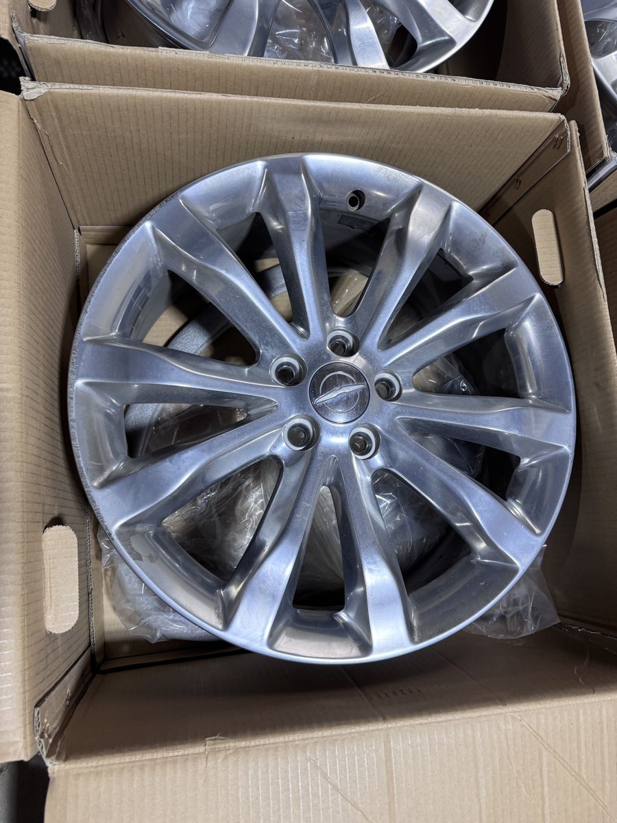 They are 4 polished 20 inch, 5 V-SPOKE, OEM Rims with the center Chrysler caps. They do not include bolts or sensors. These are an aluminum wheel, PVD bright chrome polish finish.