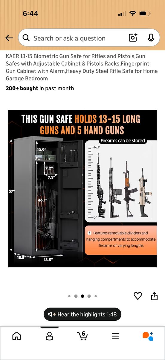 VenmoKAER 13-15 Biometric Gun Safe for Rifles and Pistols,Gun Safes with Adjustable Cabinet & Pistols Racks,Fingerprint Gun Cabinet with Alarm,Heavy Duty Steel Rifle Safe for Home Garage Bedroom