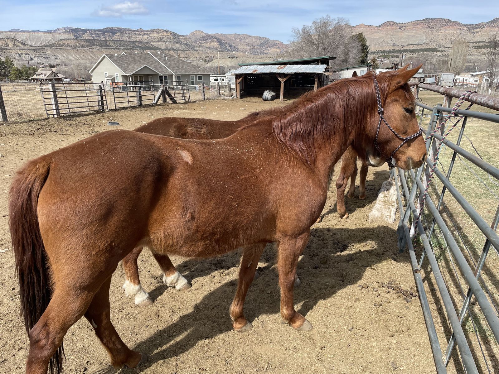 8 year old 15.1 hands Montana Traveler Mare for sale. Mare is gaited and can move on the trail. She belonged to my Granddaughter who has gone away to college and now is going over seas on student exchange. Because the mare has not been ridden more than three times in the last five years, I am selling her as green broke.