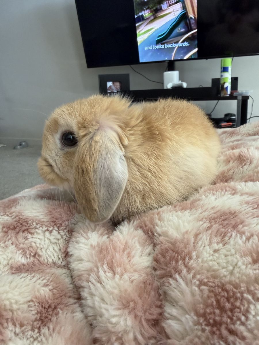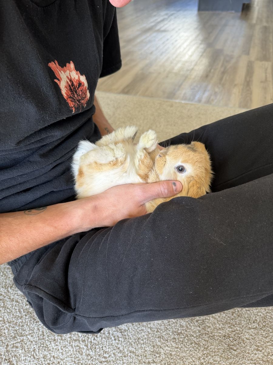 ApplePayMale holland lop! He comes with hay, a playpen, a litter box & bowls. We have been working with a litter box for a few weeks now.