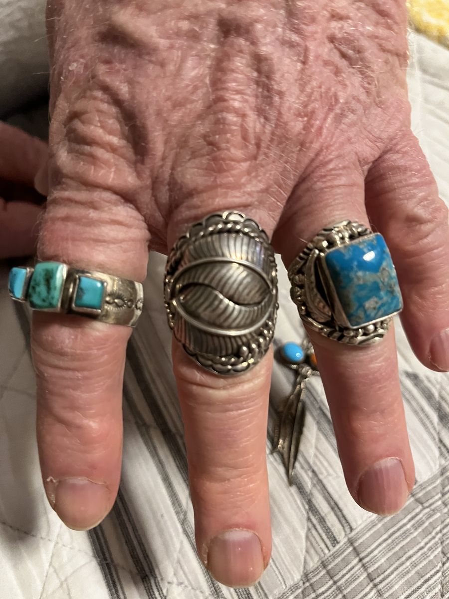 In very good condition light weight trex cobia, mountain bike, new tires, new never used water bottles, new paded seat. Custom made dinosaur bowl tie, from famous Native American Platero navajo. orange Japerized dinosaur necklace. Sterling silver vintage bracelet. custom made blue dinosaur bone ring. 3 custom rings from Native American Platero. Sterling silver necklace made by Platero. Sterling silver necklace with sterling silver dinosaur egg that opens up. Sterling silver necklace with vintage 999 silver Alaska pipeline 1 ounce. Silver dollar belt buckle. Antique bracelet from famous Native American. Want to trade for a car. Items not for sale trade only