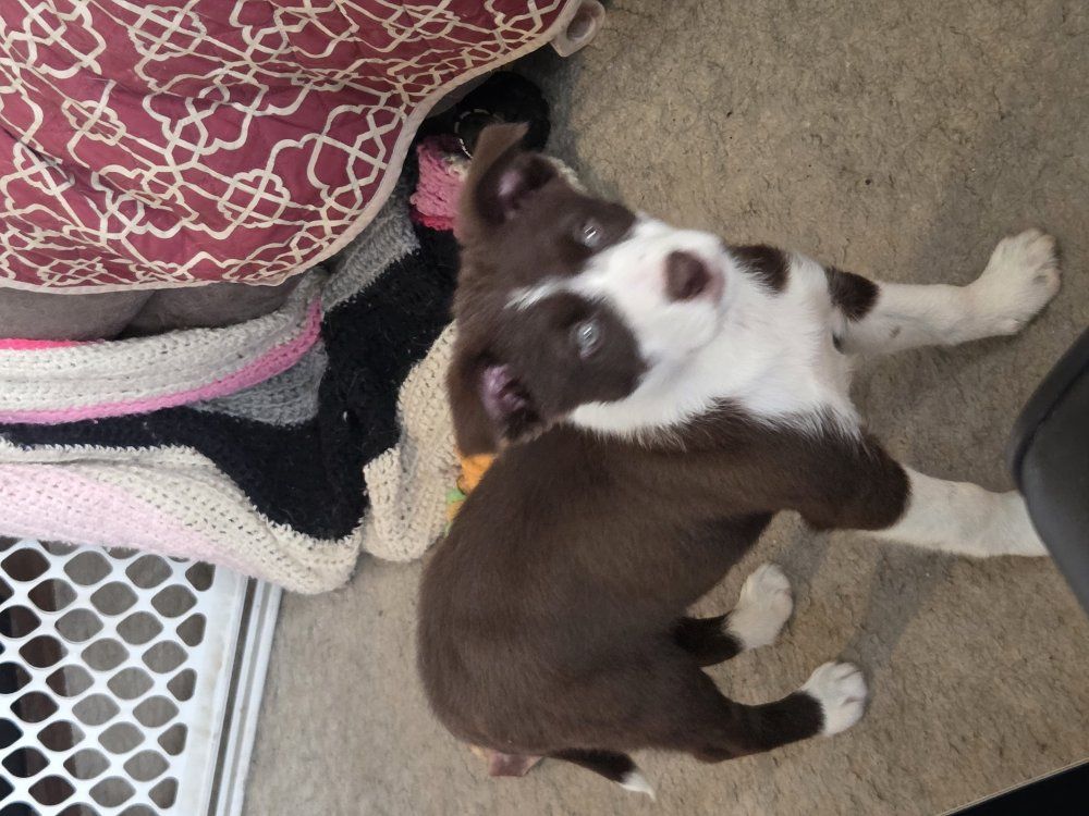 Border collie/basenji mix. 4 month old female puppy. Not house broken. Shots up to date. Fairly good with other dogs and cats. Full of energy. Turns out I'm allergic to her. she needs someone to help train her in order to be house broken. 125.00 rehoming fee. Comes with her cage, some puppy food and diapers. Texting is best. Cash only in person. 801-735-2091.