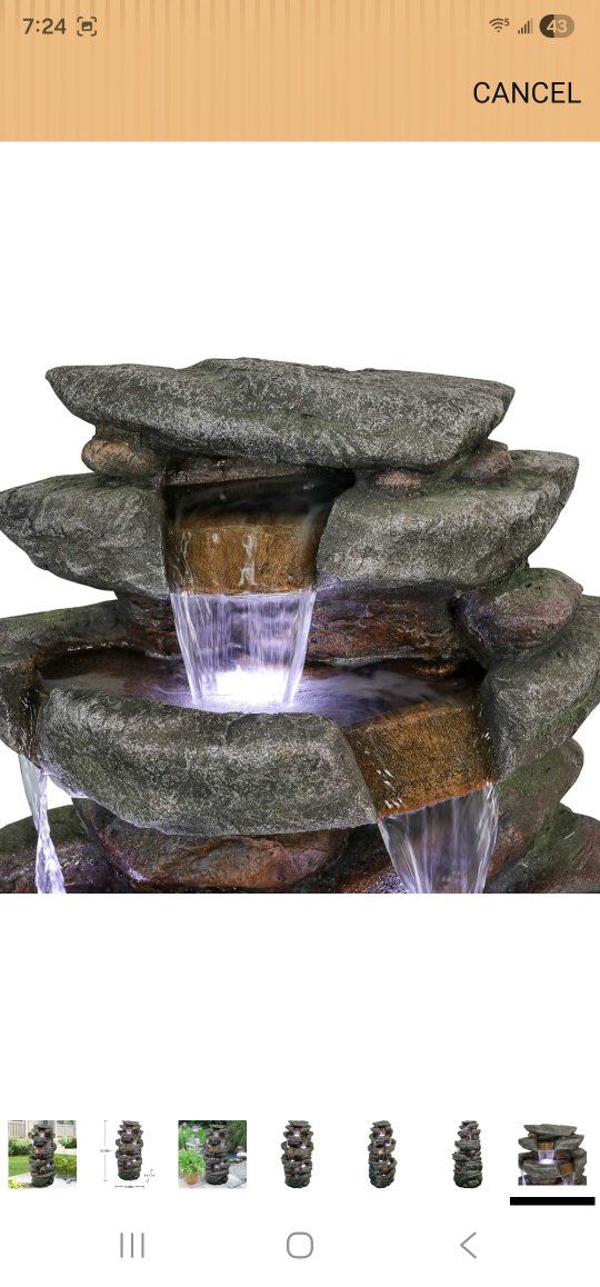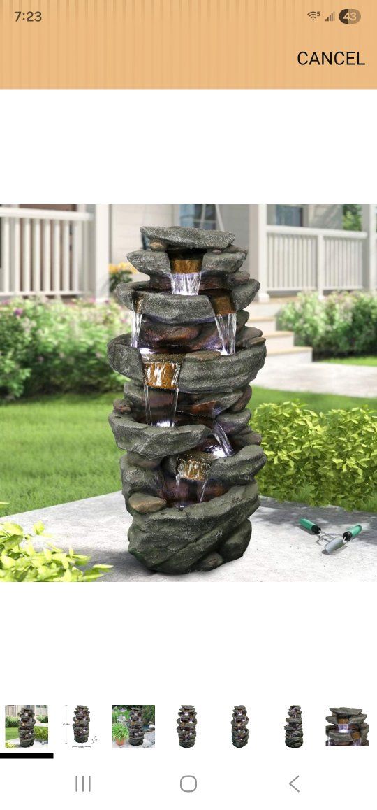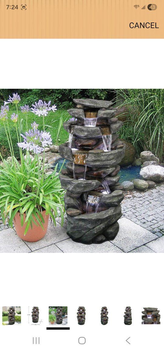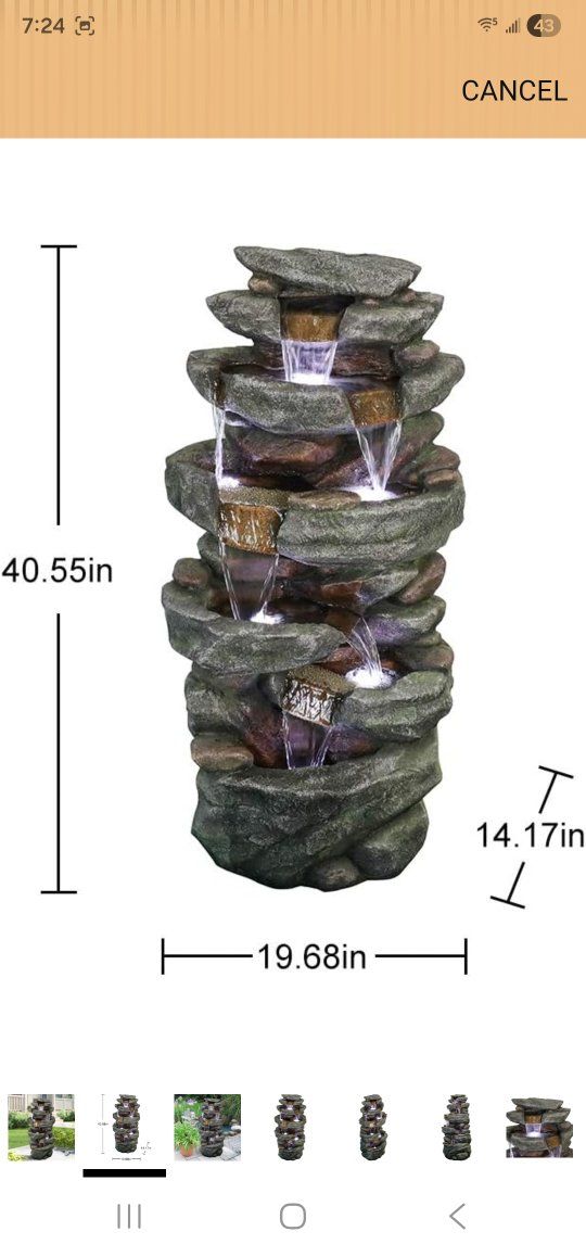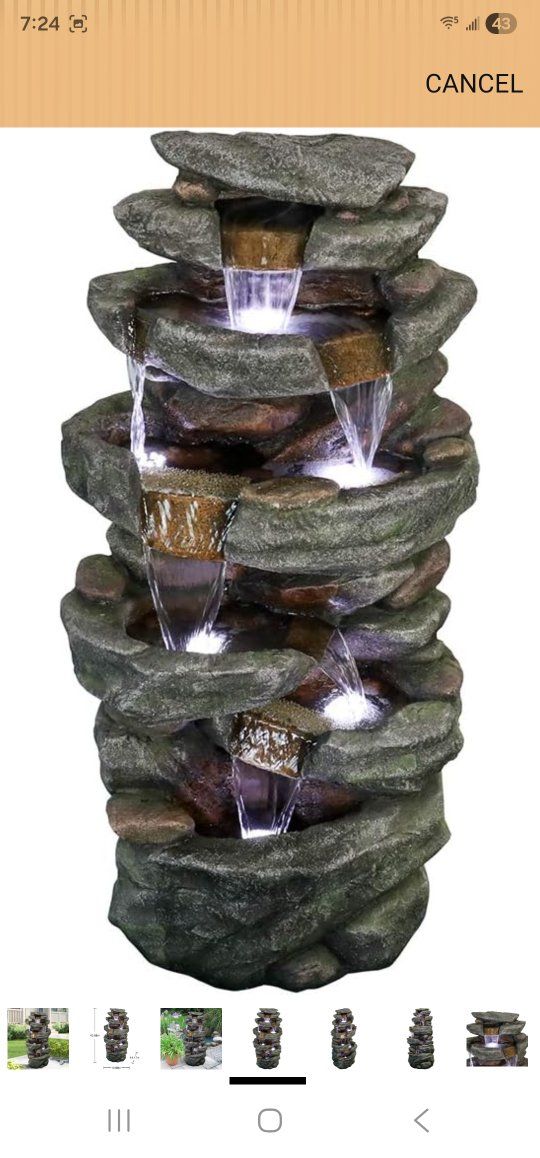 VenmoI have this water fountain brand new in perfect shape retail is 299.99 selling for 250 Keep the Beauty of Nature - It is a nature-inspired cascade water feature. Blends of contemporary modern design, natural elements, and rustic charm for surrounding decor, offers soothing, tranquil and meditative water flow sounds for a calming ambiance. With the water gently cascading over natural-looking stone tiers, the outdoor waterfall fountain is a vivid addition to indoor and outdoor, patio and garden, front door and stairway, yard and lawn, etc Provide Long Lasting Using - The stone-liking water fountain was made from the resin with fiberglass, features the most sturdy but lightweight function. It is not made from real stones, but as robust as stone, and more lightweight than stones, very portable to move and position. Easy and Safe Assemble - Bulit-in UL-listed low-voltage submersible pump to keep the water flow running circularly from the top tier to the bottom tier. It is very easy to set up this outdoor fountains and waterfalls. The pump is safety tested and certificate approved. Provides no-worry visual and listening enjoyment Perfect Indoor Outdoor Decor - Suitable size (LWG):19.714.240.6”, rock-stacking structure, charming natural water running sounds, fantastic 6 LEDs lighted cascading waterfalls, this LED rockery fountain will create a peaceful and harmonious atmosphere to house, company, garden, patio, yard, lawn, etc. *Ideal GiftHigh quality lightweight material made this LED illuminated rockery outdoor garden fountain, made it the best gift to your families and friends. Bring the beauty of nature and contemporary to you and your friends’ home or office.