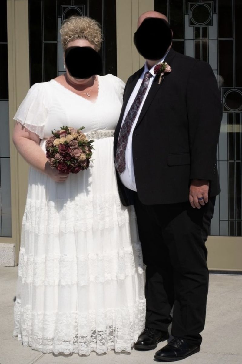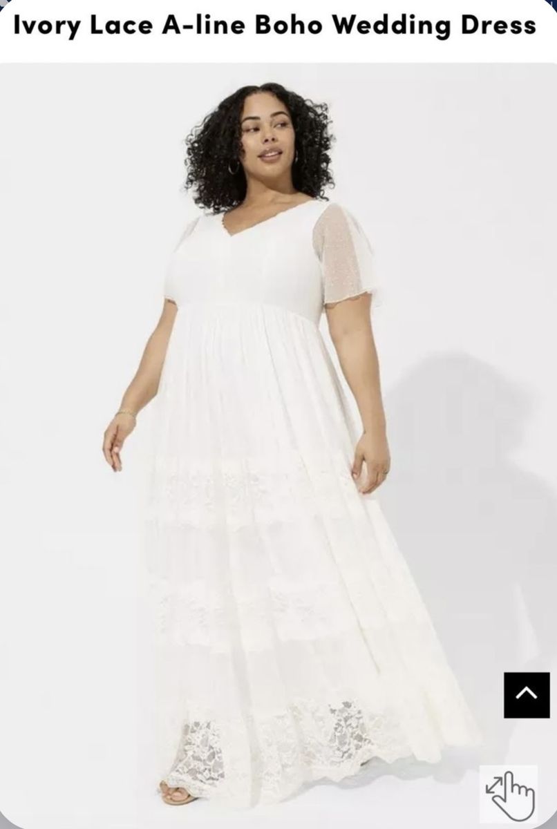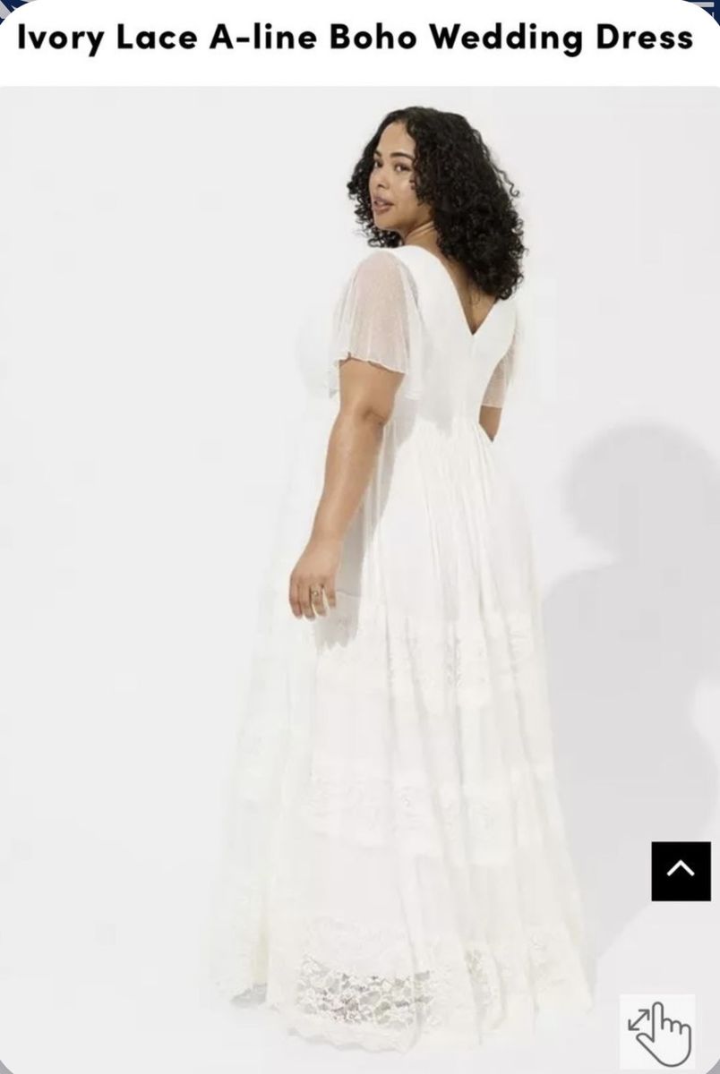 ApplePayMake me an offer! Dress purchased for $350 from Torrid. Size 5. Dress is no longer available at Torrid. No alterations made other than lining the sleeves so they weren't sheer, and a removable piece of fabric across the back for a little more coverage. Only worn for pictures. I am 5'8" and it touched the ground perfectly. Bottom skirt has several layers and is heavy. Beautiful for a summer wedding. I will include the jeweled ribbon sash and headband as well if you'd like them. Dress comes in a Torrid garment bag. Pick up in north American Fork.