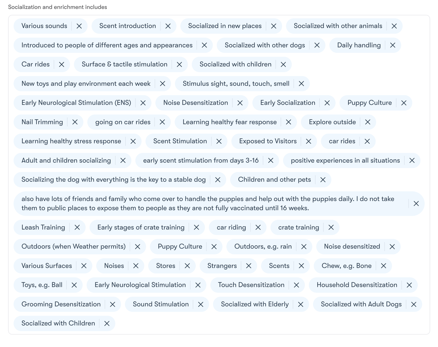 We spend a lot of time with them—handling, socializing, and exposing them to new things—so they grow into confident, easygoing dogs.