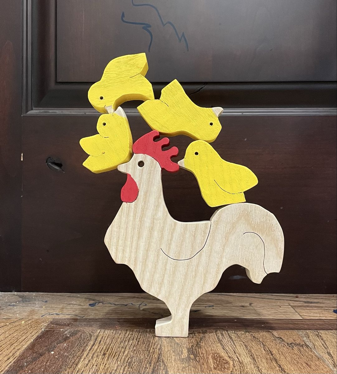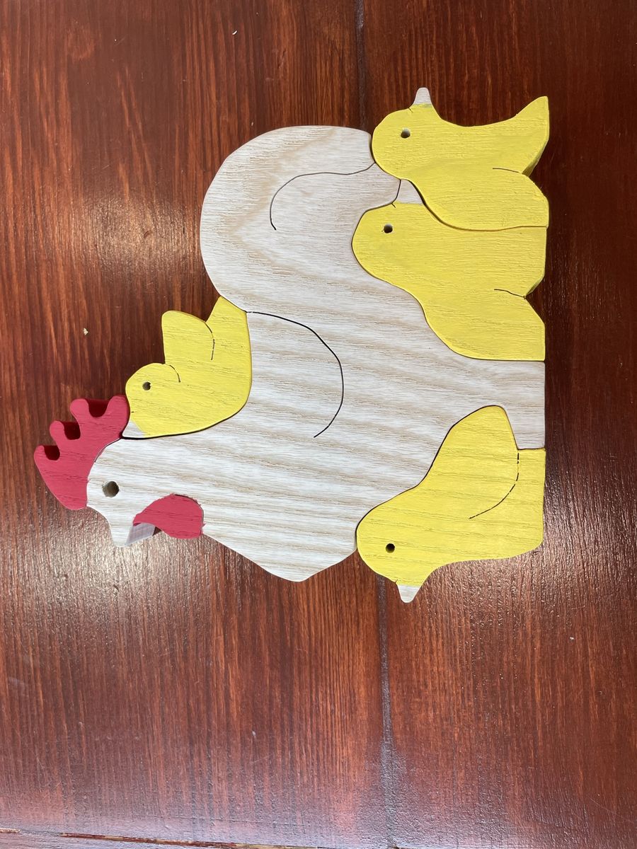 GooglePayI had a ton of fun cutting this family out on my scroll saw. Now they are looking for a new home. Approximate dimensions: The hen is 7” tall by 6” wide, the chicks are about 2” tall. Painted with non-toxic acrylic paint.