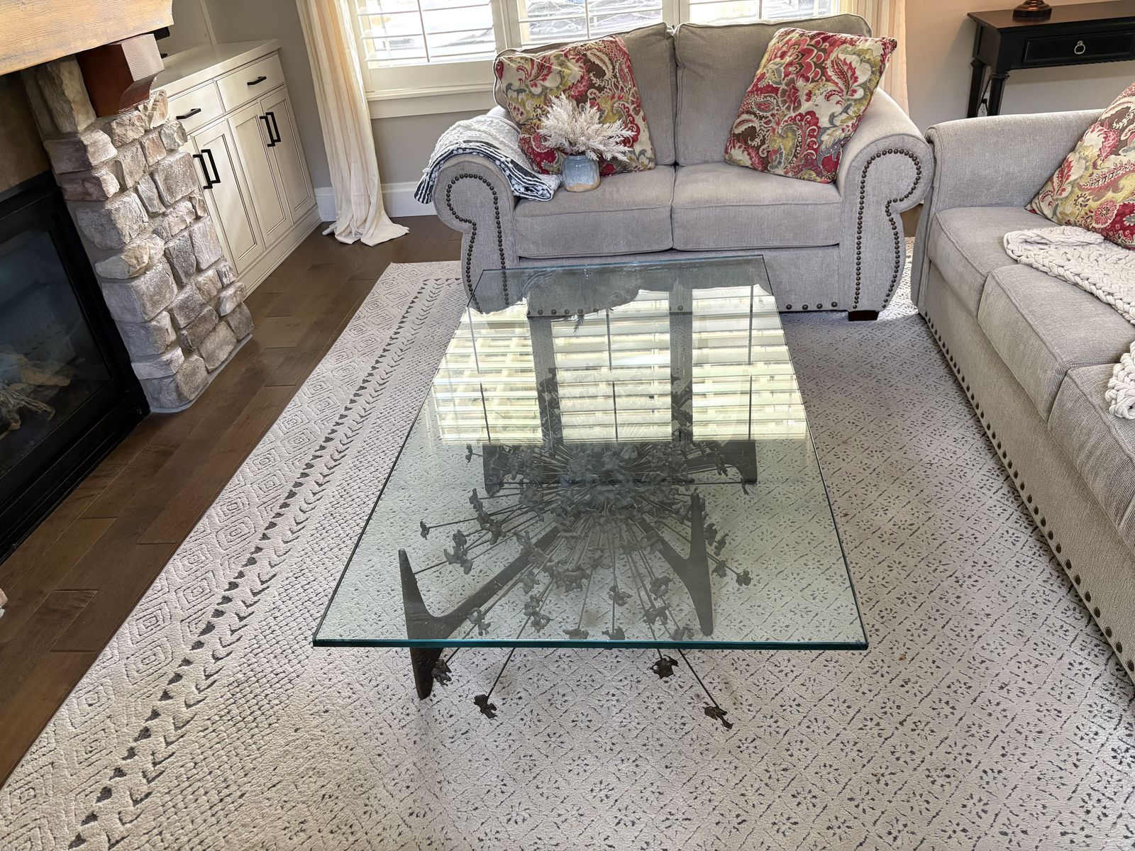THIS IS A GLASS AND ORNAMENTAL IRON COFFEE TABLE. IT WILL INHANCE ANY ROOM THAT YOU CHOOSE TO PUT IT IN.