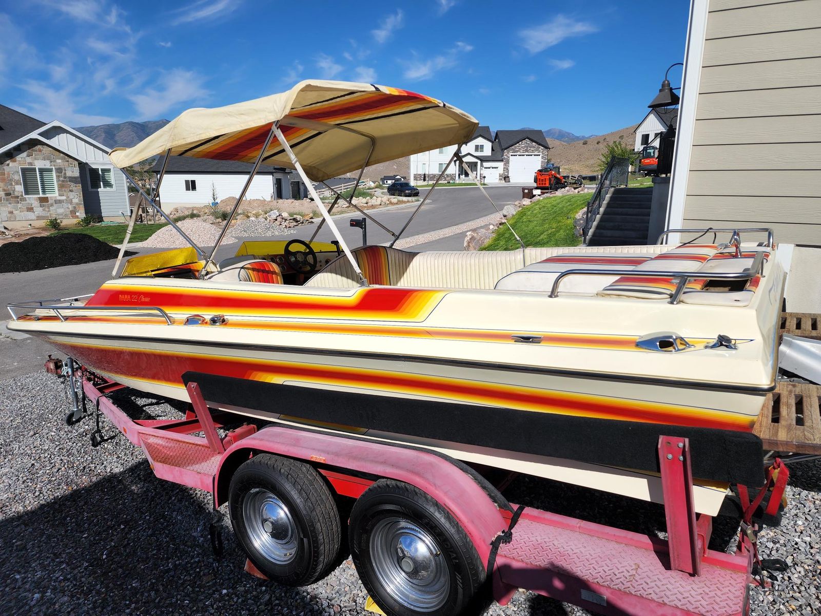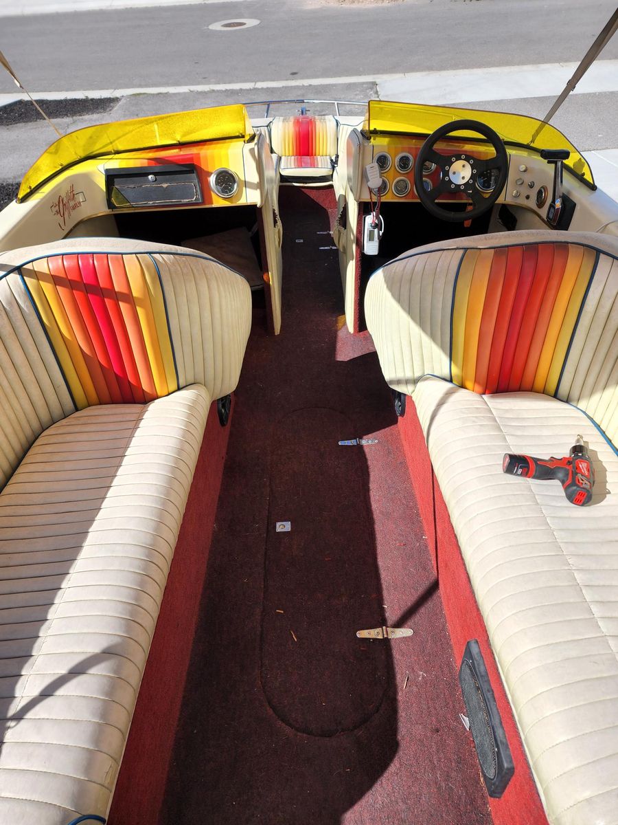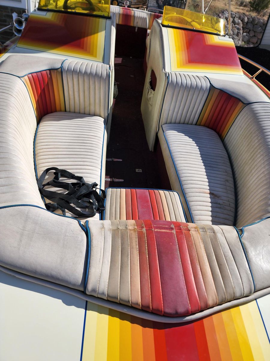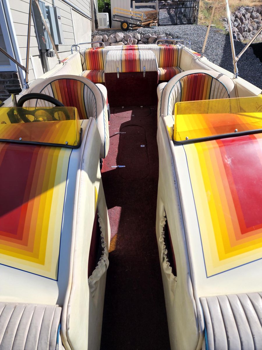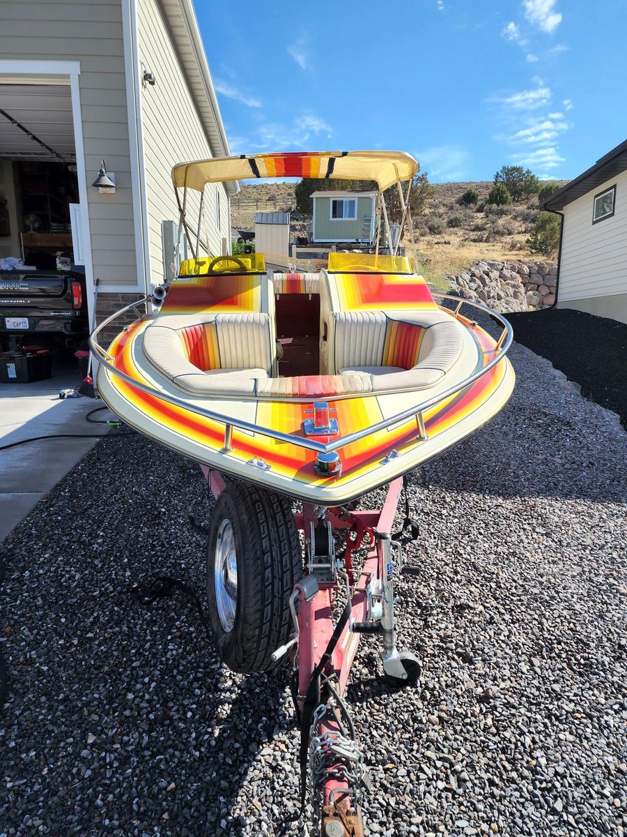 Runs great, fun boat and it gets lots of compliments. This was a restoration project, it is completely functional and usable, a few cosmetic things remain. Life's priorities have changed. Motor tuned, new hoses, belts, batteries, sound system, marine radio, rebuilt upper and lower drives, new prop for Utah elevation. Trailer has new bunks, rollers, bearings and tires. Runs like a champ. Next projects on my list were to have the trailer painted, and new vinyl and carpet.