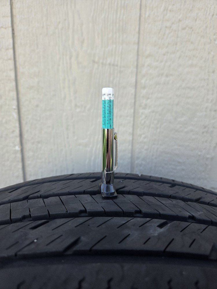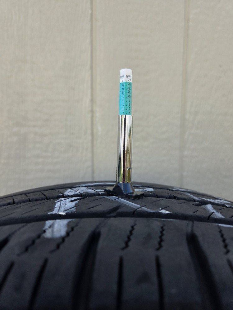 Even wear and plenty of tread life on all four. From the factory they have ~10.5/32 inches of tread depth and these still have ~7/32 inches.