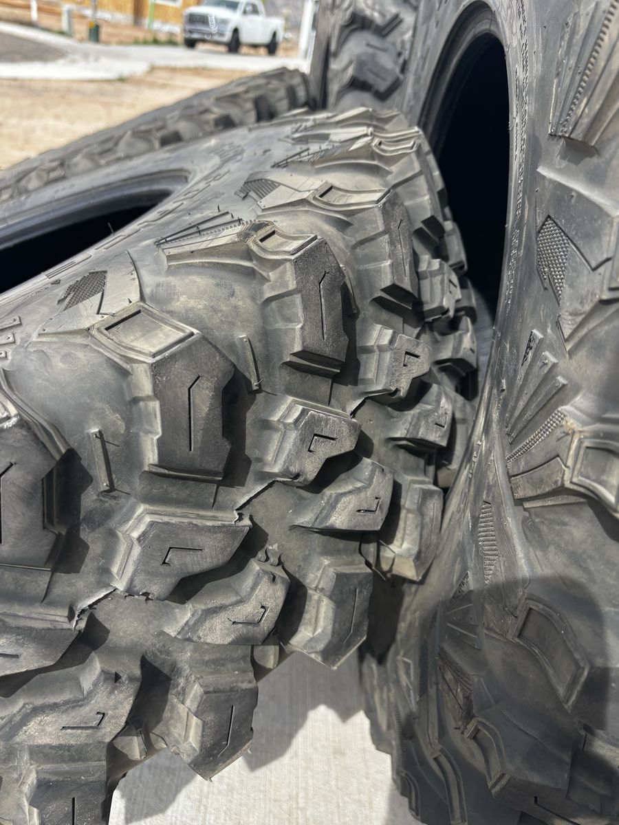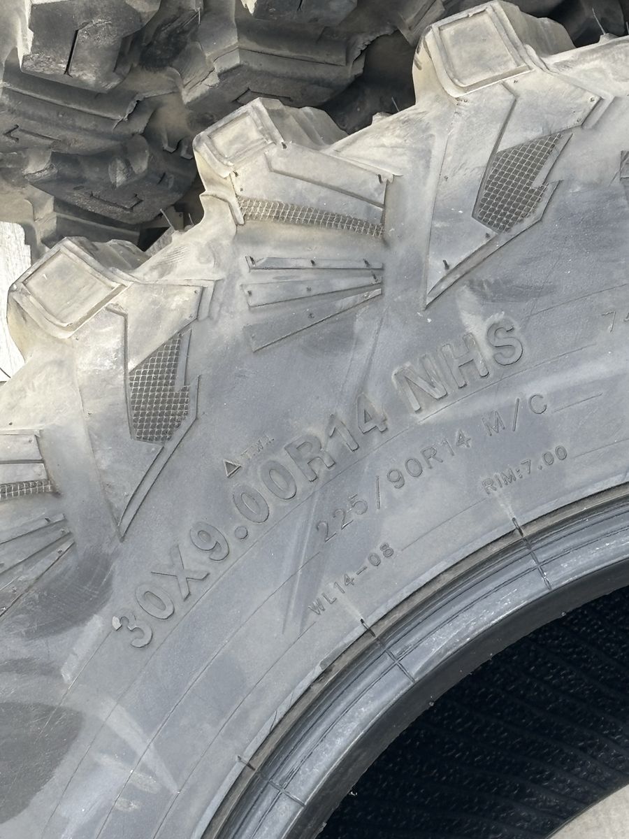 Set of 4 take-off tires from a Can-Am Defender Max Limited. Two 30x10x14 Two 30x9x14\