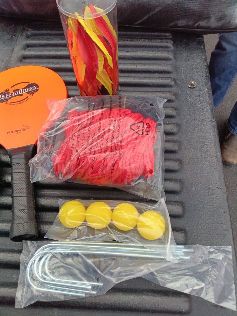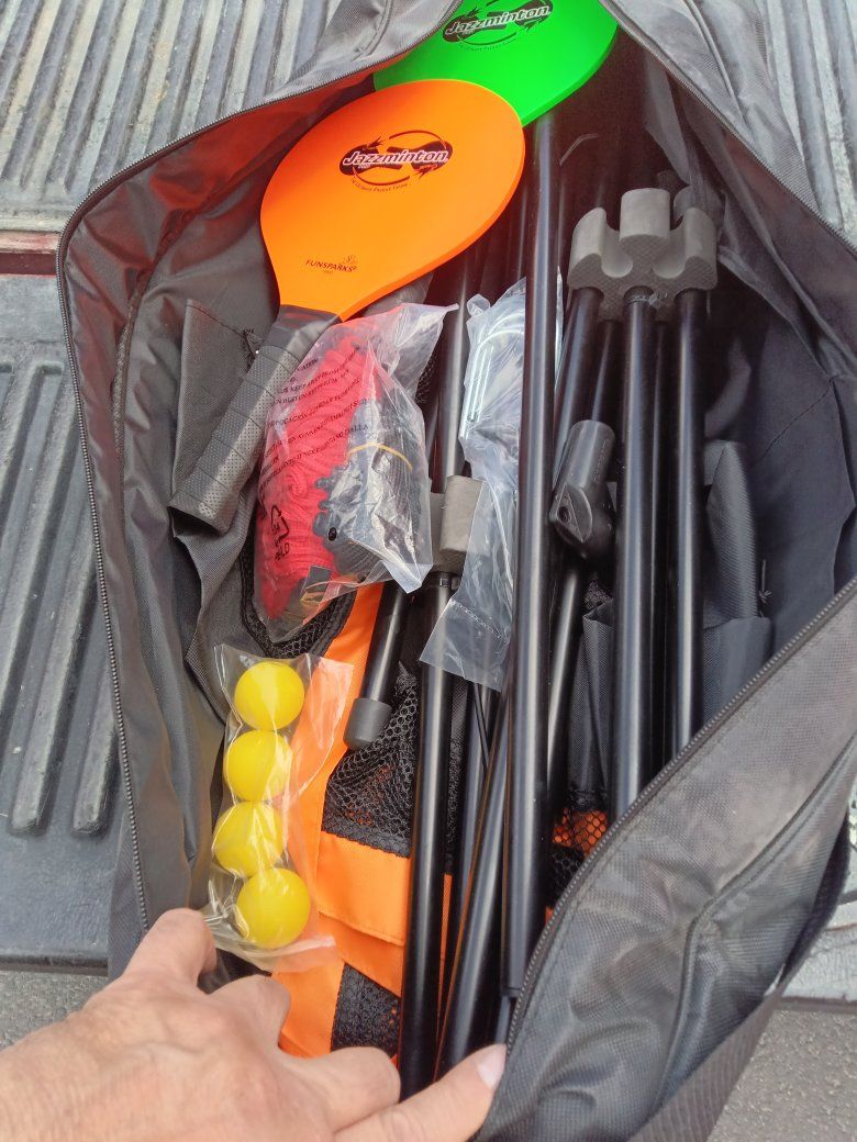 Jassminton Sports Game has a net & frane for the net that is quick and easy to assemble balls or feather flyers has never been used and is completely new see pictures for details. This would make a great fun game for the upcoming camping season also is great home or in your work office! Fantastic prize $40