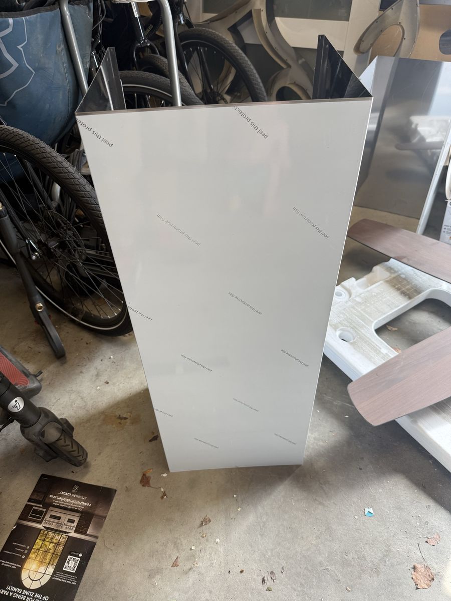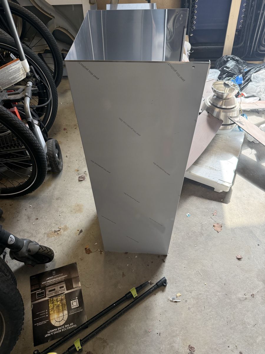 Range good chimney extension, stainless steel. That is a plastic film in pic