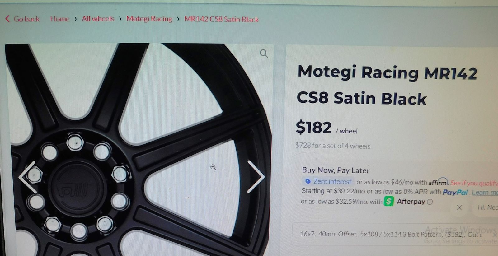 Set of 4 16x7 inches Motegi black rims MR142 CS8 stain black rims lug patern 5x100 inches and 5x114.3 mm no bent no dent or scratches like new $280 $70 per rims compare to $182 per rims